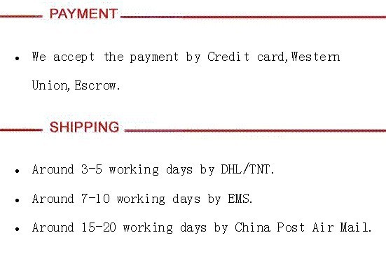 | Post Air Mail | Free Shipping | 15 - 45 days |