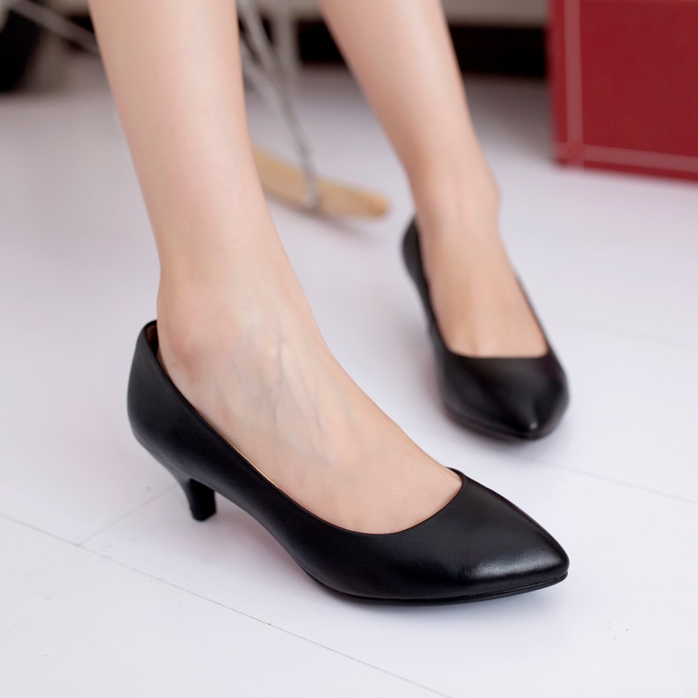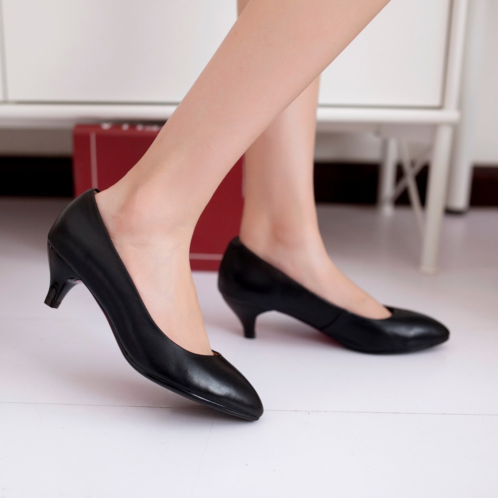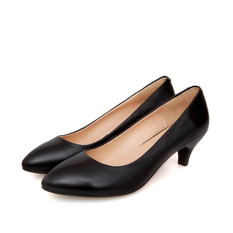 Free shipping womens OL working shoes genuine leather single shoes office shoes med heel ladies shoes