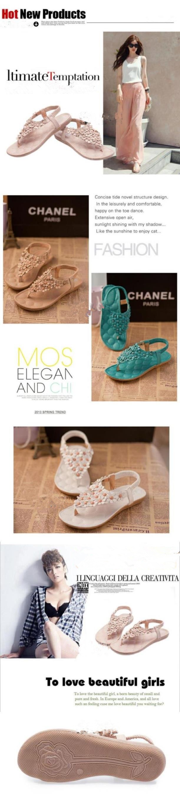 Free shippingbohemian style flat shoes summer new beaded flip shoes clip toe flat sandals flowers Korean version
