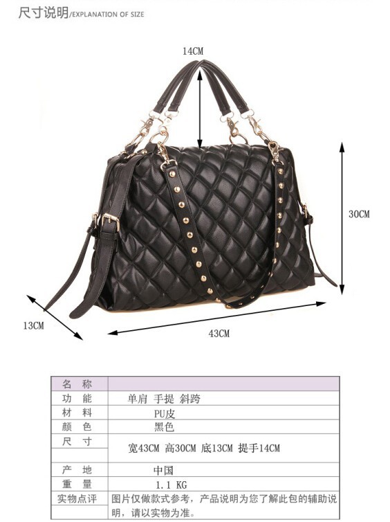 Free shipping!Hot Sell high quality golden rivet strap lozenge Spiraea rivet package handbag shoulder bag Messenger bag