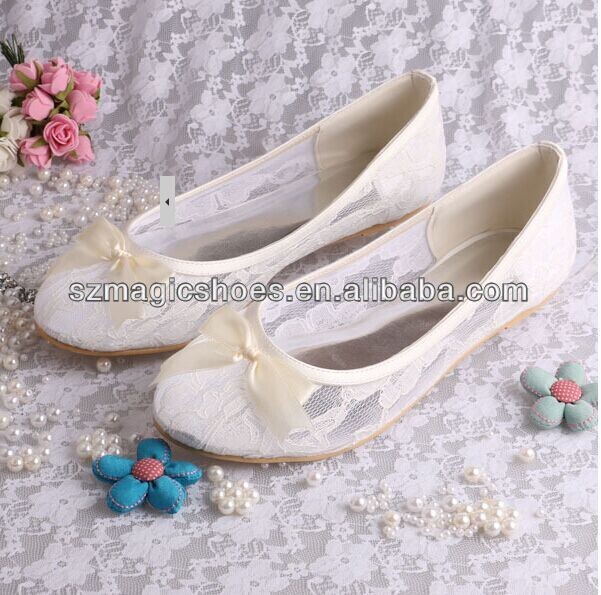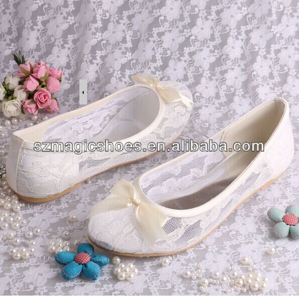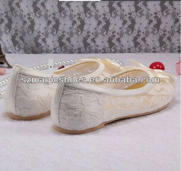 Free/Drop Shipping Ivory Lace Ballet Flats Bridal Wedding Shoes Women With Ribbon Bowtie