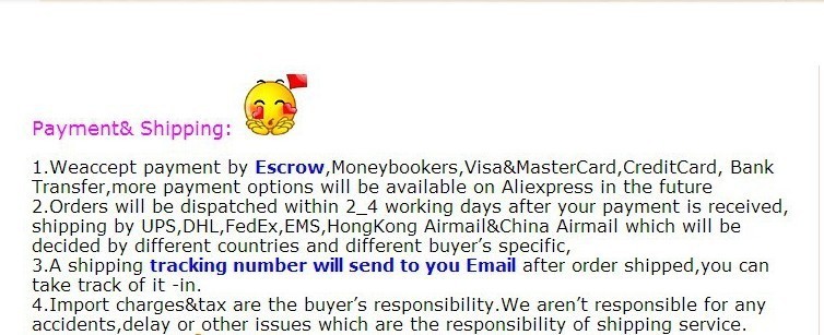 | Seller Service | On-time DeliveryIf you do not receive your purchase within 60 days, you can ask for a full refund before order completion (when you click "Confirm Order Received" or exceed confirmation timeframe). |