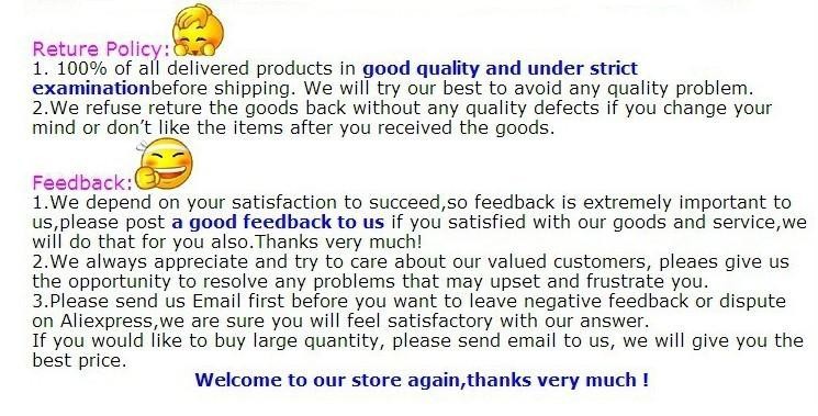 | Return Policy | If the product you receive is not as described or low quality, the seller promises that you may return it before order completion (when you click "Confirm Order Received" or exceed confirmation timeframe) and receive a full refund. The return shipping fee will be paid by you. Or, you can choose to keep the product and agree the refund amount directly with the seller. N.B.: If the seller provides the "Longer Protection" service on this product, you may ask for refund up to 15 days after order completion. |