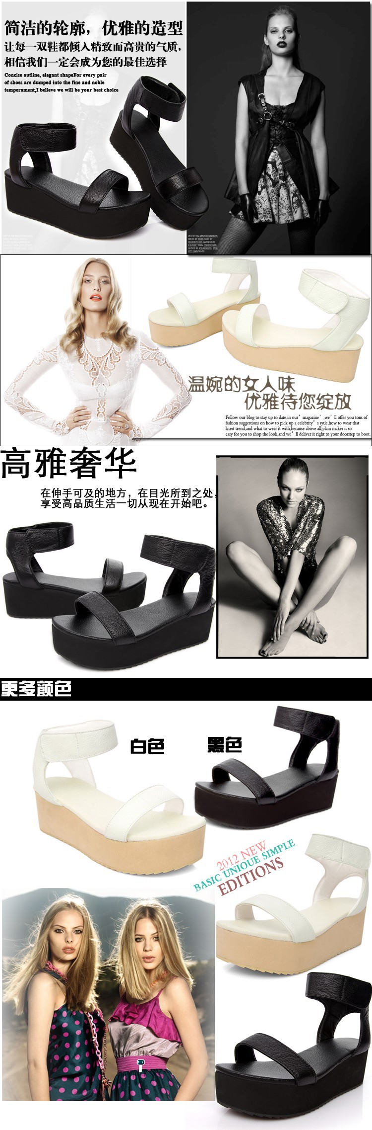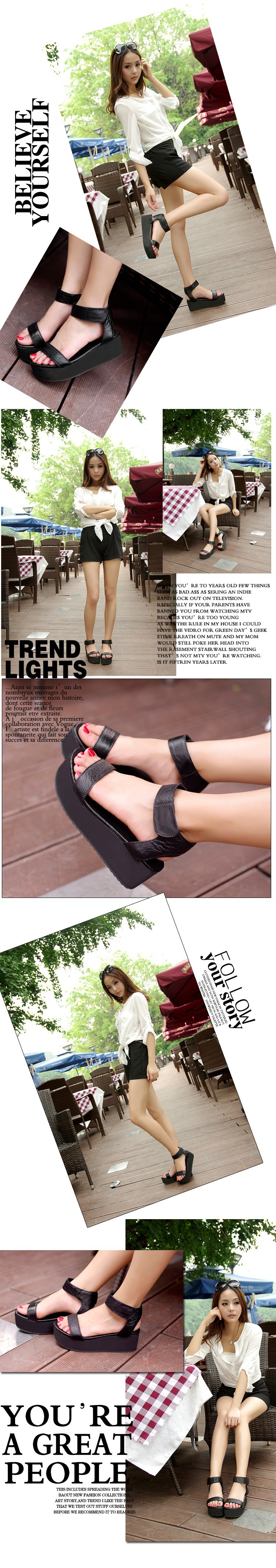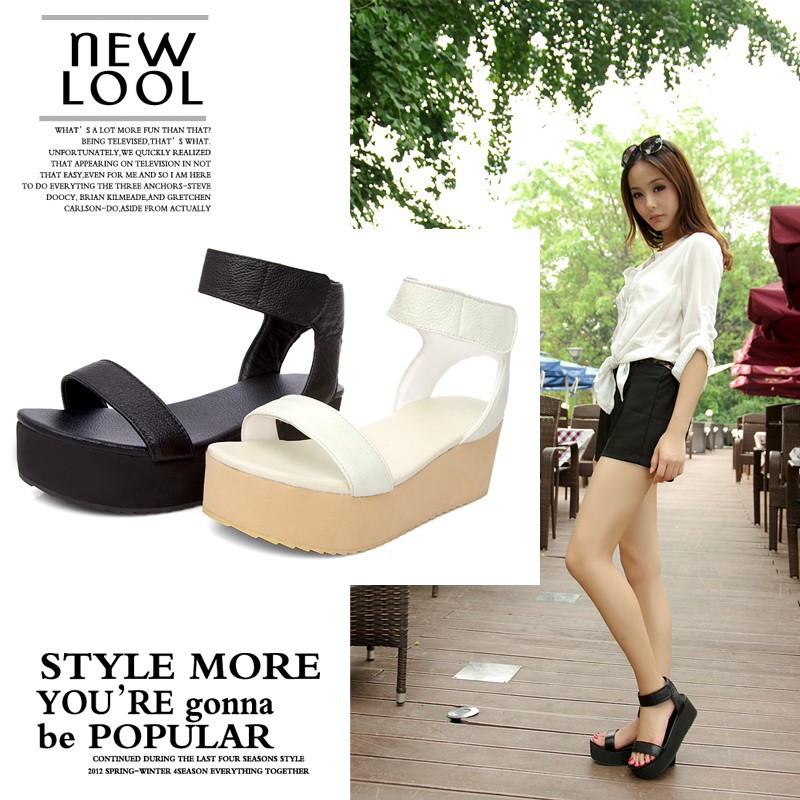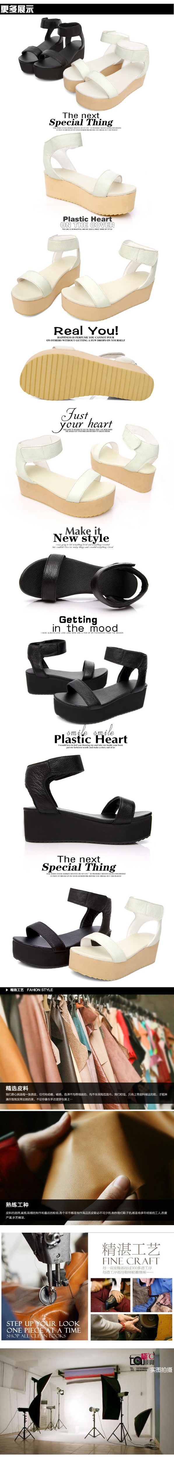 Freeshipping 2014 new summer fashion women genuine leather shoes platform wedges women’s sandals open toe casual shoes plus size