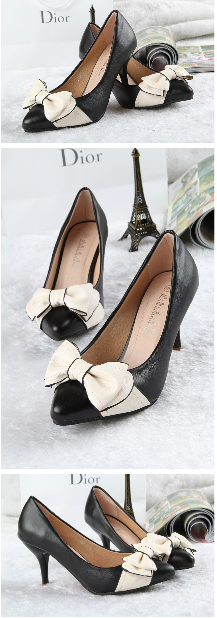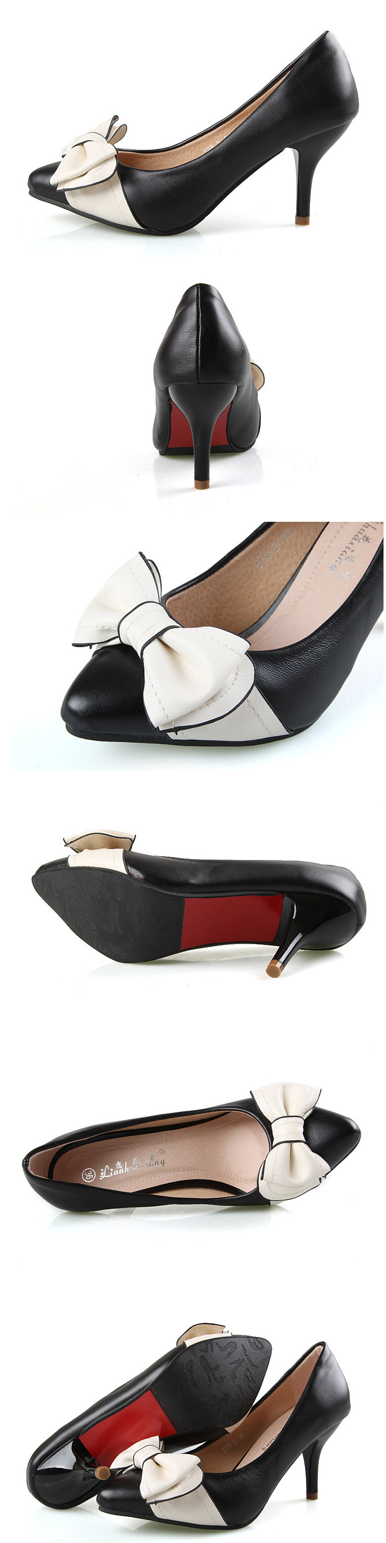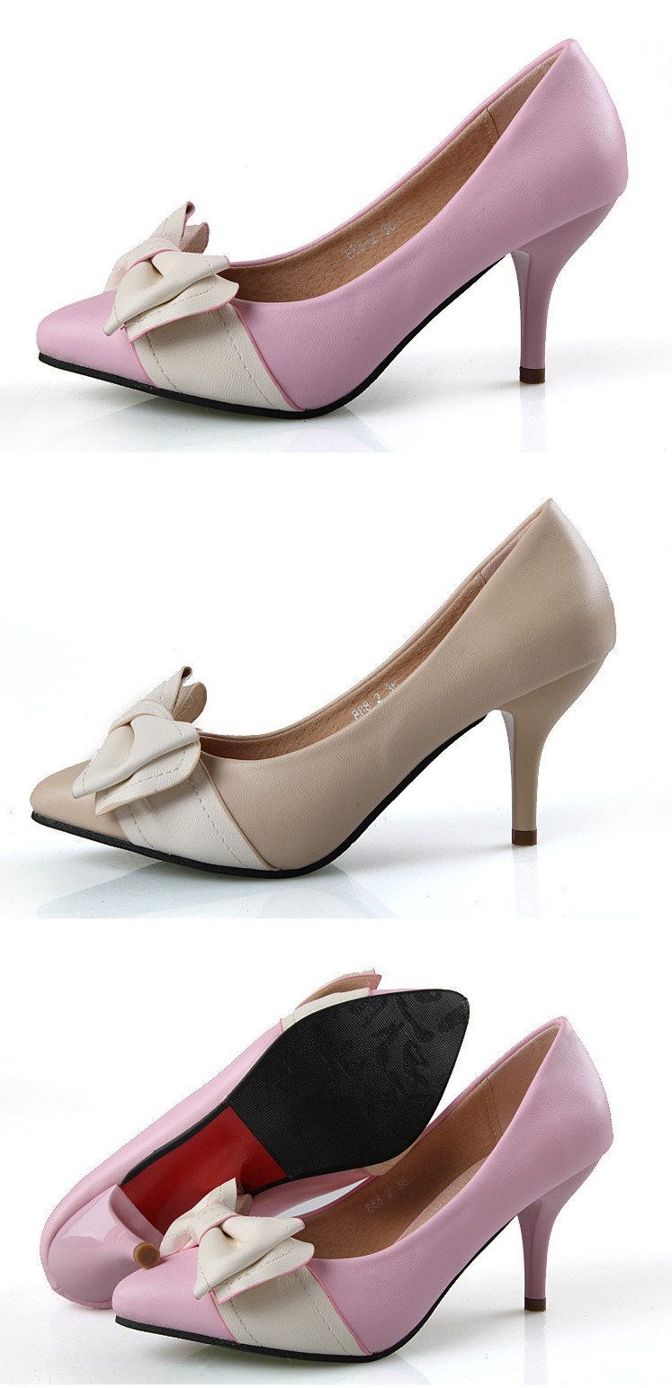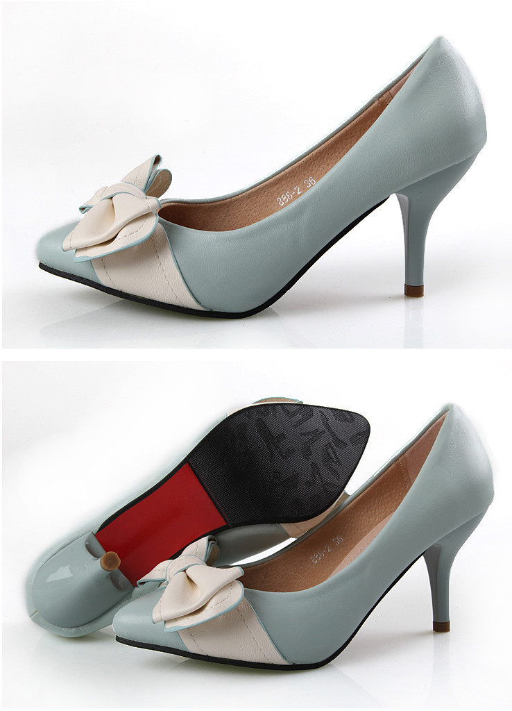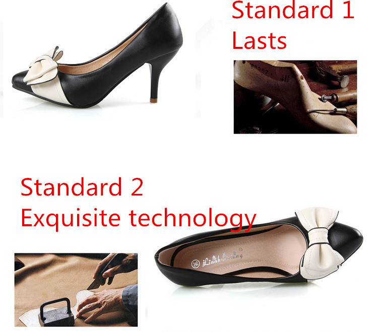 Genuine leather sole women pumps sweet&fashion pointed toe high heels platform ladies Authentic single shoes with butterfly-knot