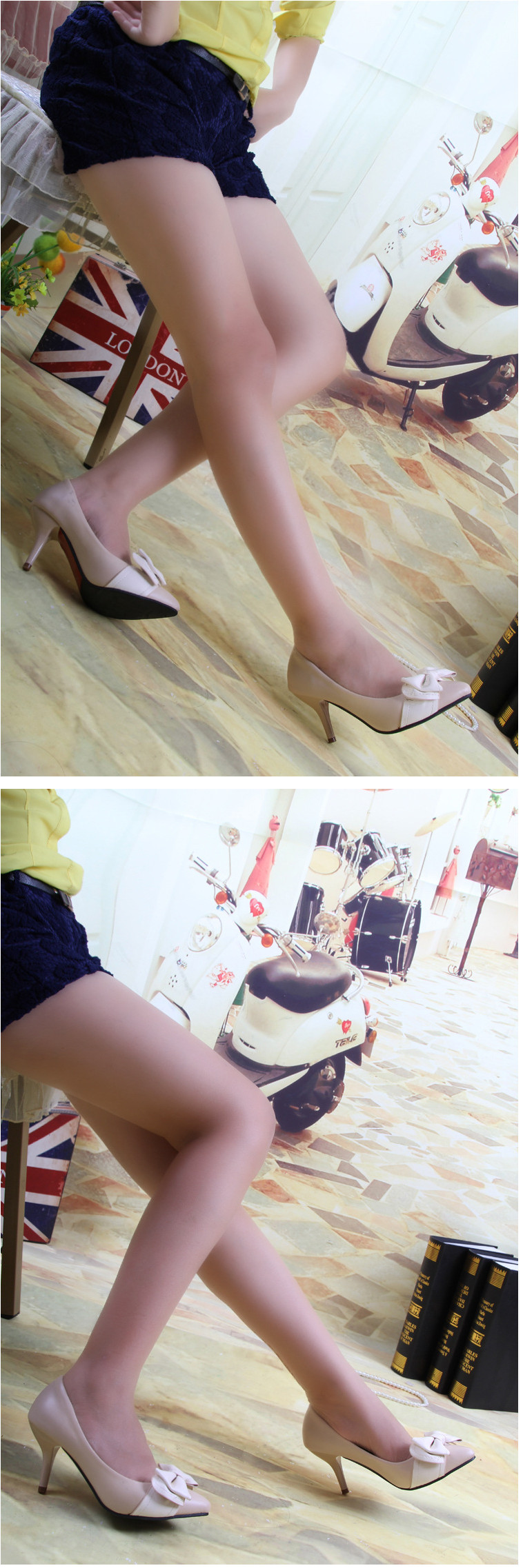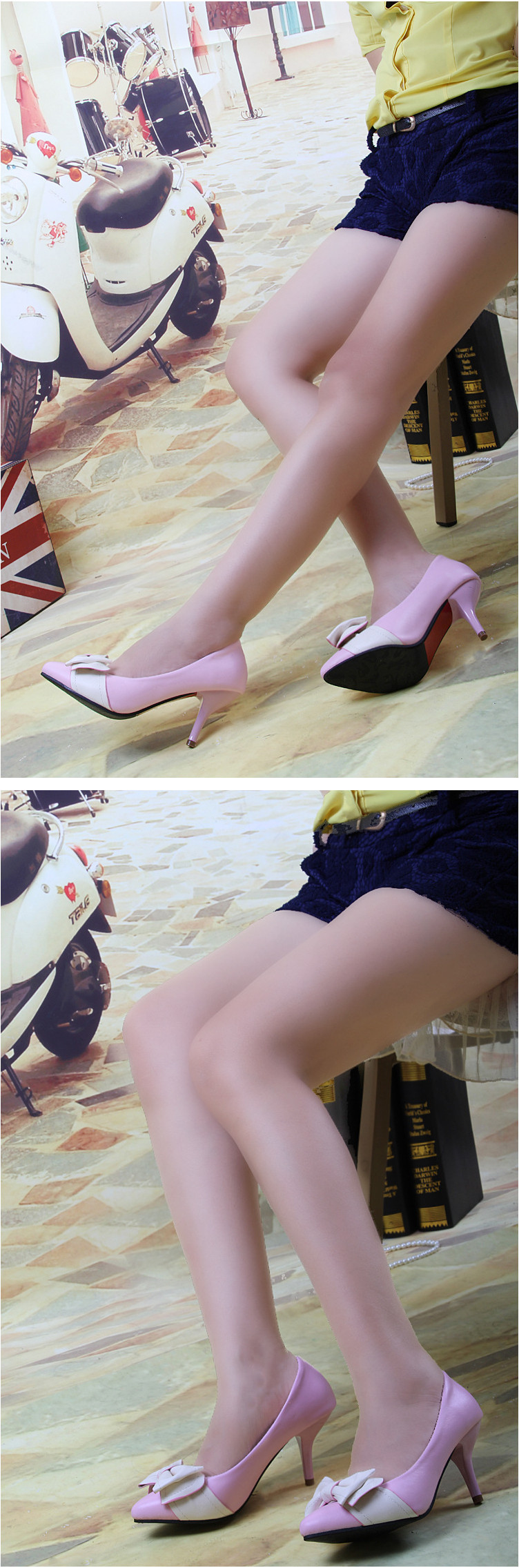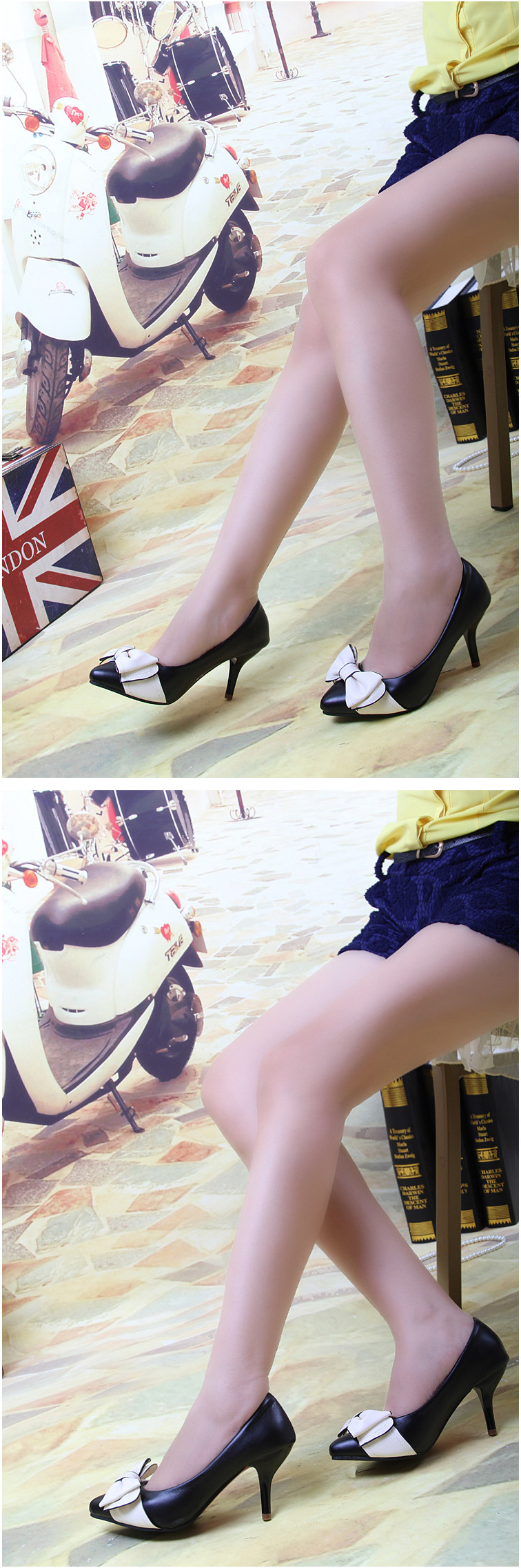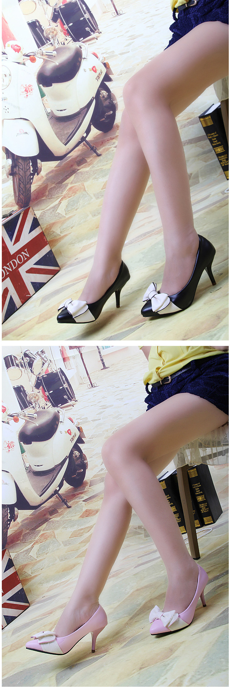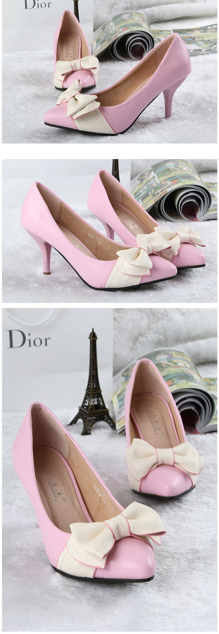 Genuine leather sole women pumps sweet&fashion pointed toe high heels platform ladies Authentic single shoes with butterfly-knot