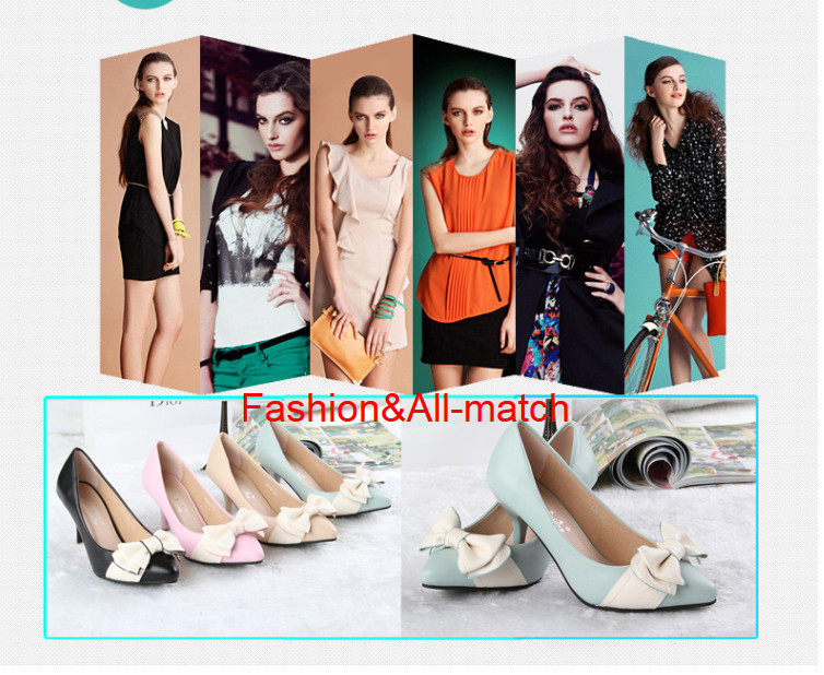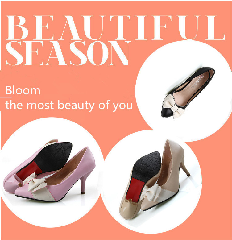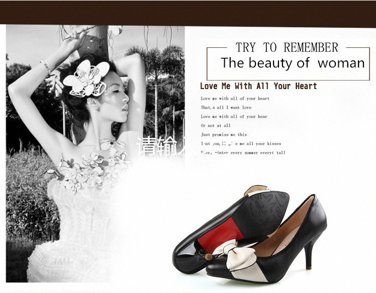 2014 Spring Genuine leather sole women pumps sweet&fashion pointed toe high heels platform ladies Authentic single shoes with butterfly-knot Design