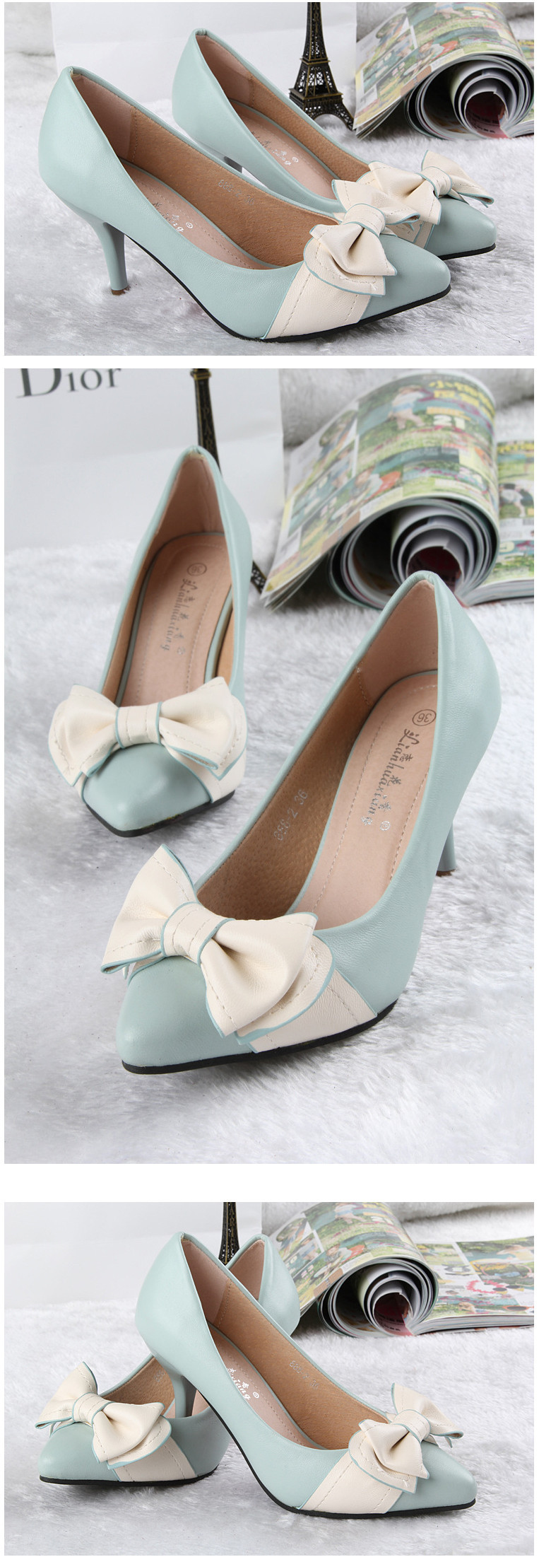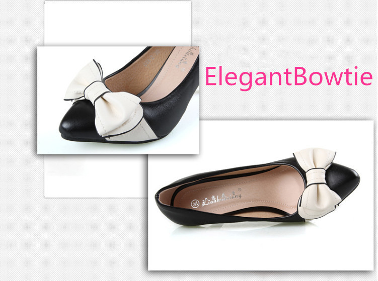 Genuine Leather Women Pumps Autumn Sweet fashion Pointed Toe Kitten Heels Ladies Single Shoes With Bowtie