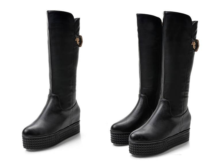 Goth Womens Platform Wedges Zipper Buckle Knee High Boots Punk Creeper Shoes