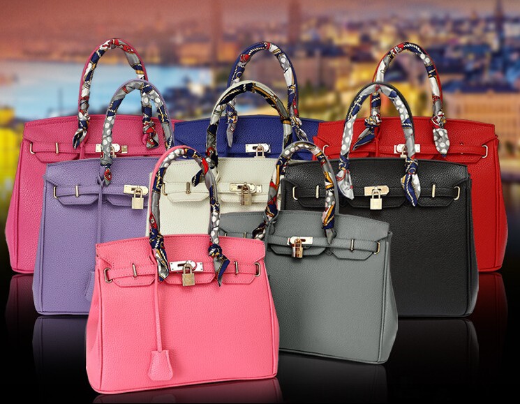 H brand France High quality leather handbag with gold lock scarf 30cm 35cm woman bags fashion 2014 designers bolsas femininas