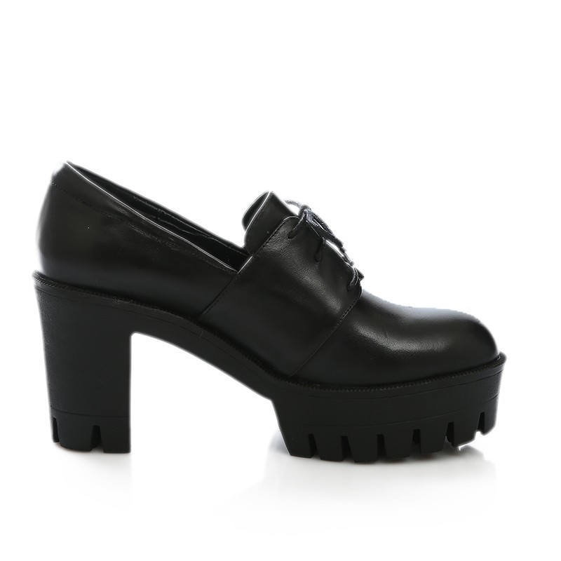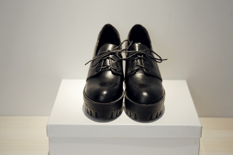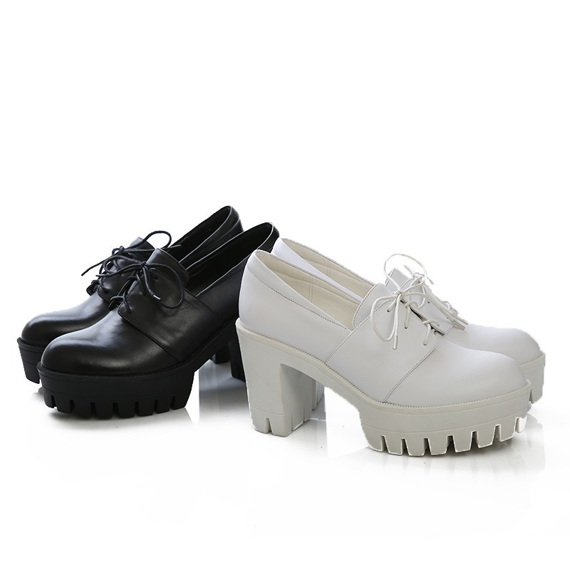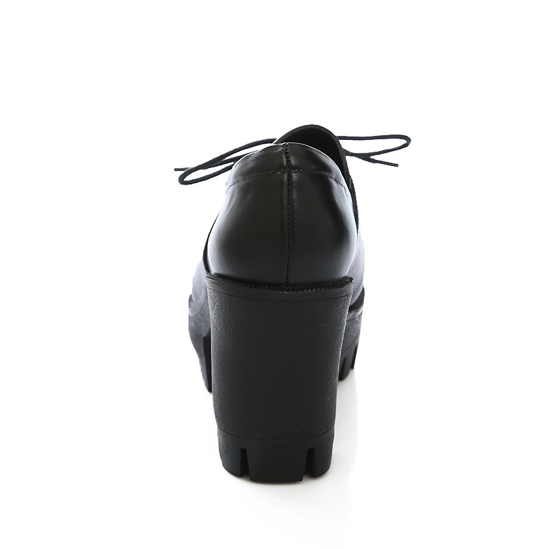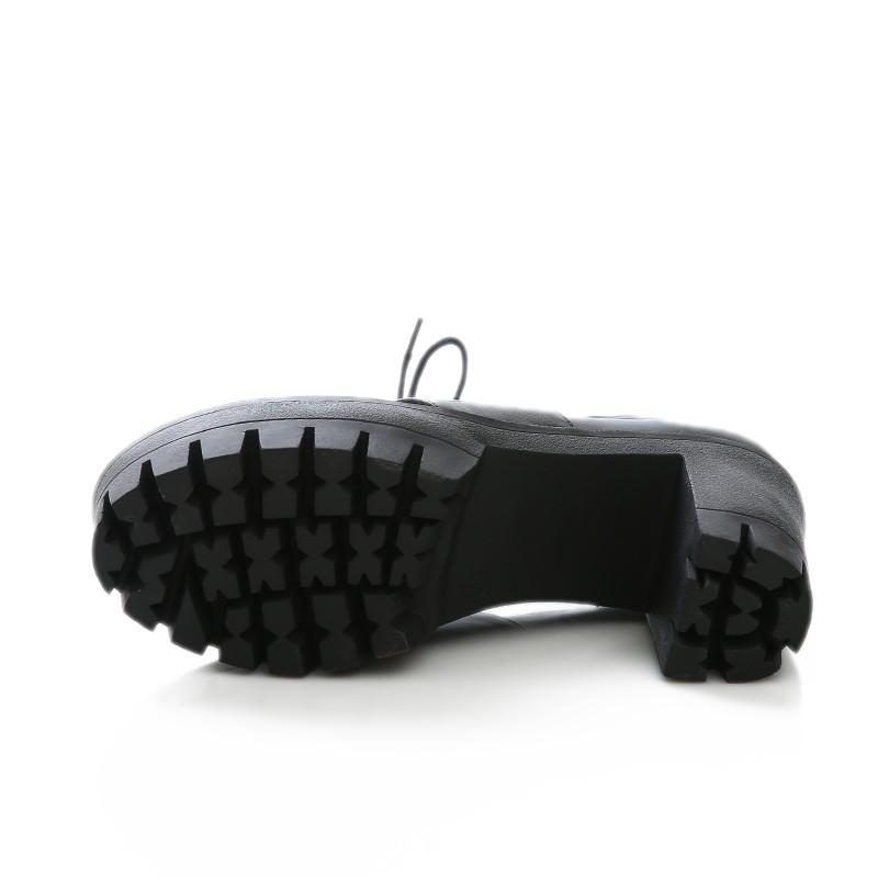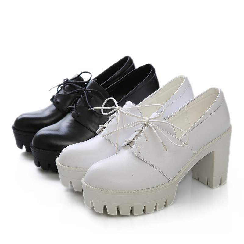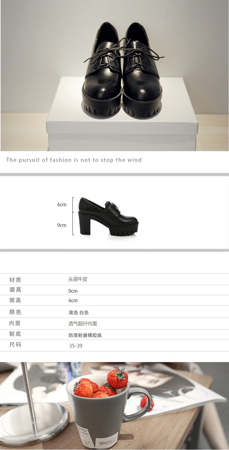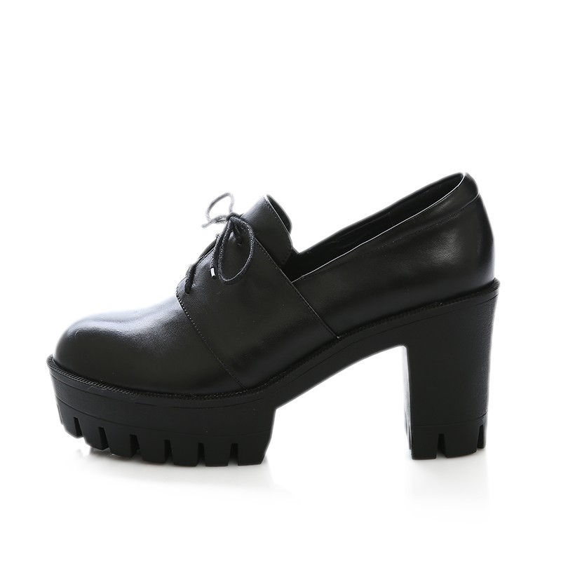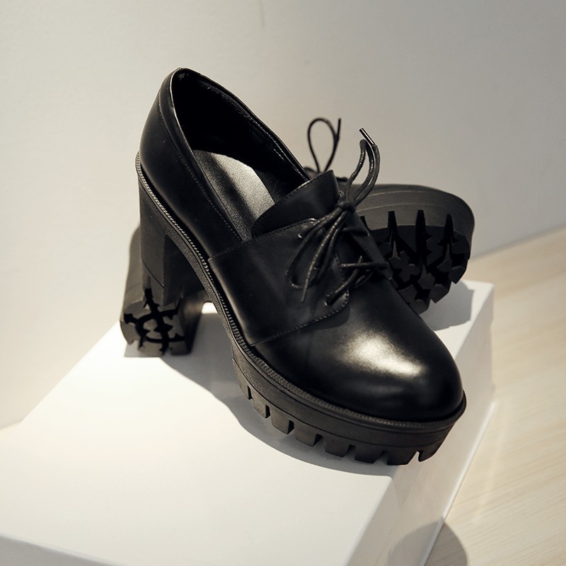 Han edition street style system with shallow mouth pure color decorative leather shoes high-heeled shoes non-skid rubber soles
