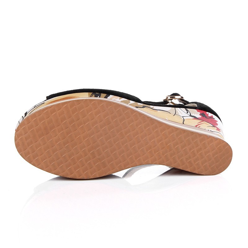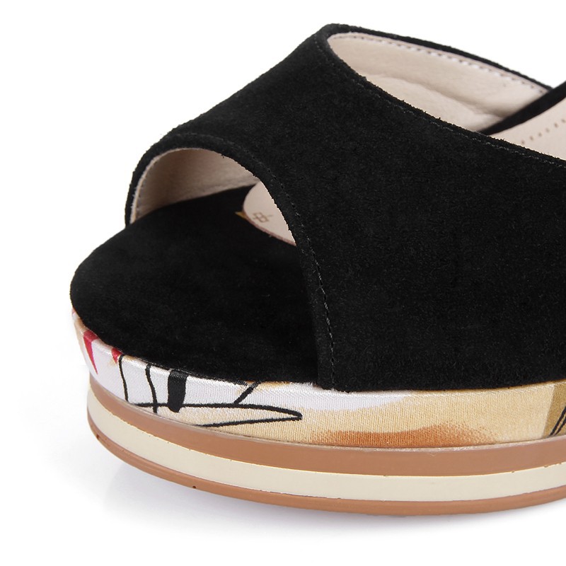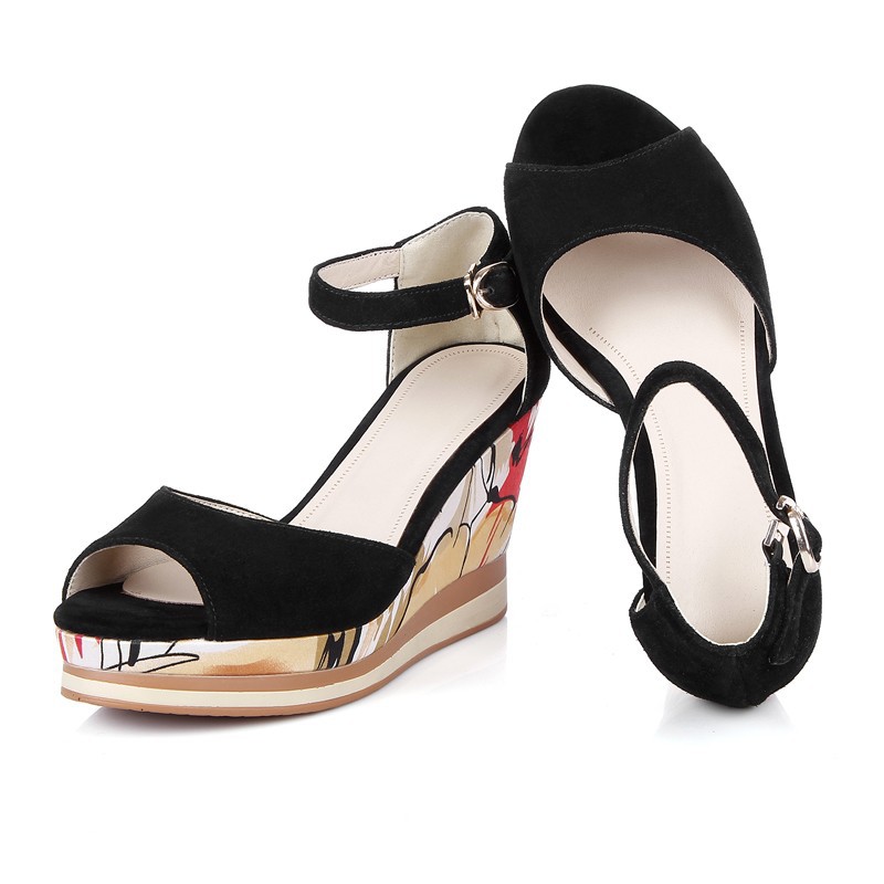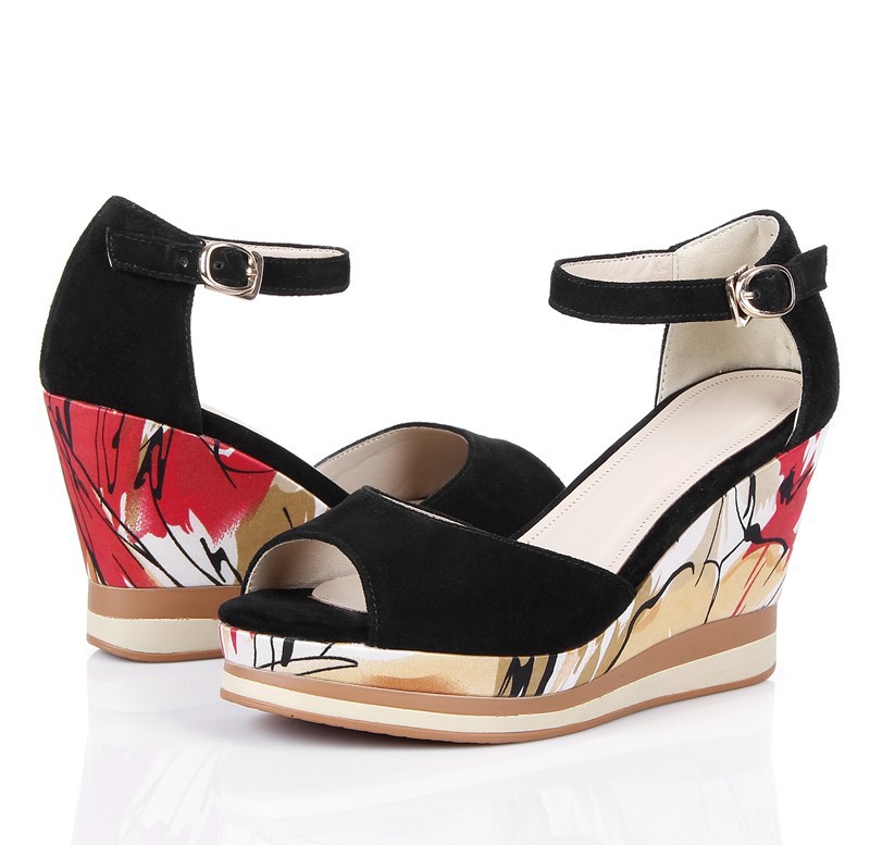 Handmade quality custom summer cool and refreshing fish mouth buckle leather sandals painting graffiti wedge heel non-slip shoes