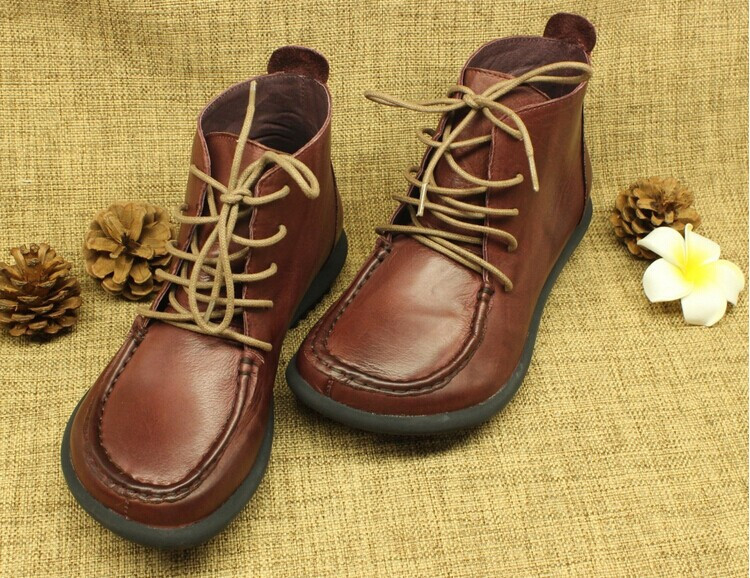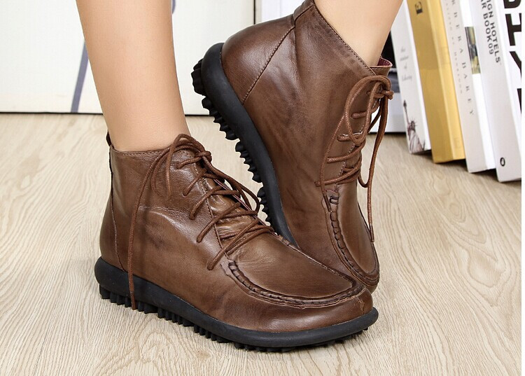 Hands made Genuine Calf Leather Series National Flavor Short Boots Flat High-top Shoe Comfortable Footwear Bohemian style 4 girl