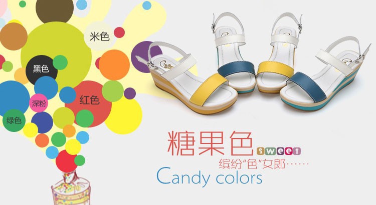 Heels Real Open Round Shoes Women Sapatos Femininos 2014 Summer New Thick Crust Slope With The Princess Sandals Toe
