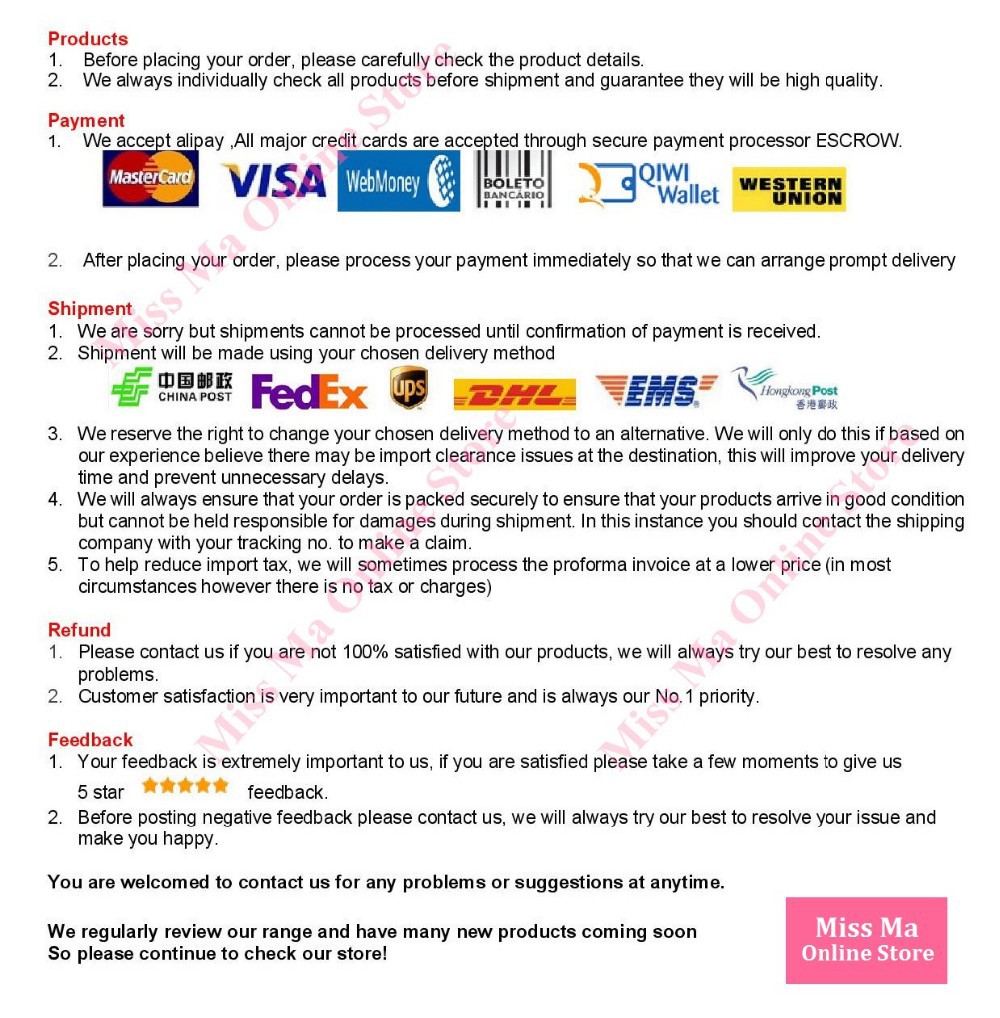 | Seller Service | On-time DeliveryIf you do not receive your purchase within 60 days, you can ask for a full refund before order completion (when you click "Confirm Order Received" or exceed confirmation timeframe). |