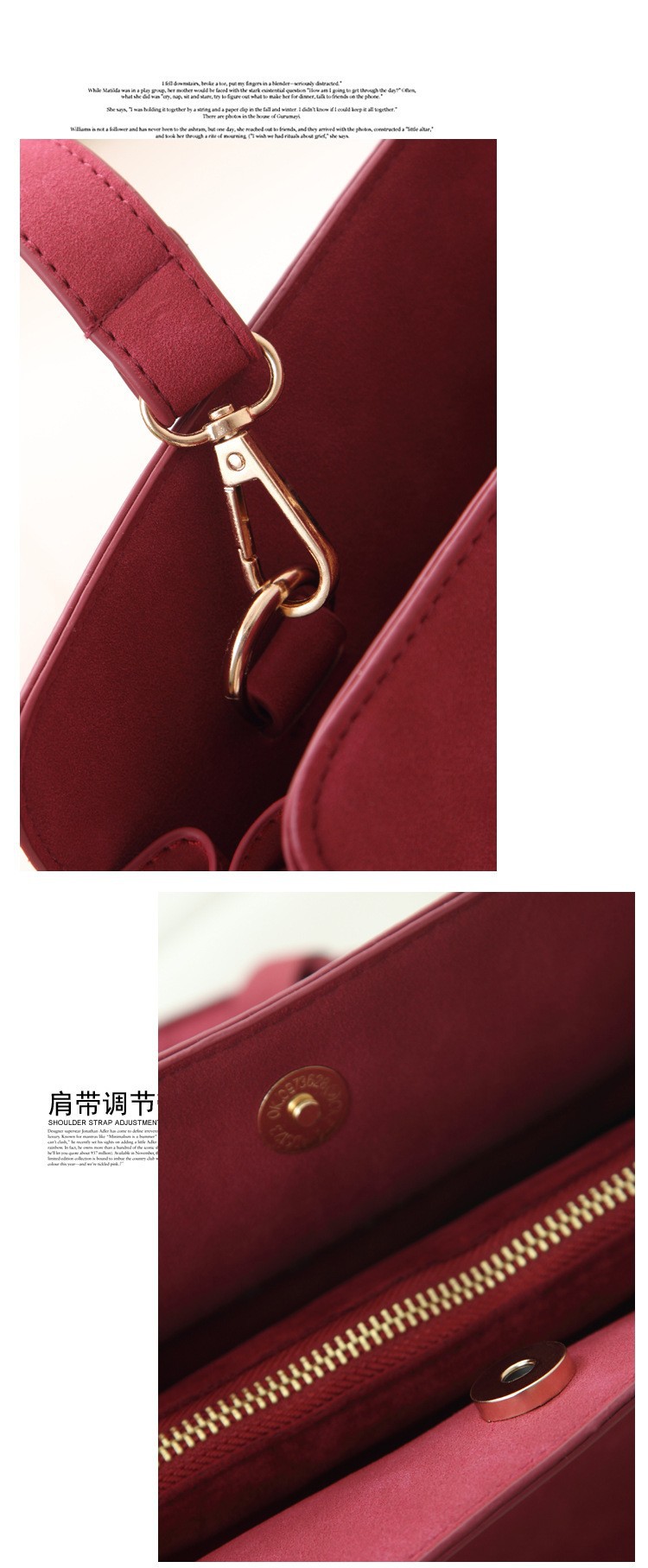 Interior: Slot pocket,cell phone pocket,zipper pocket,compartment