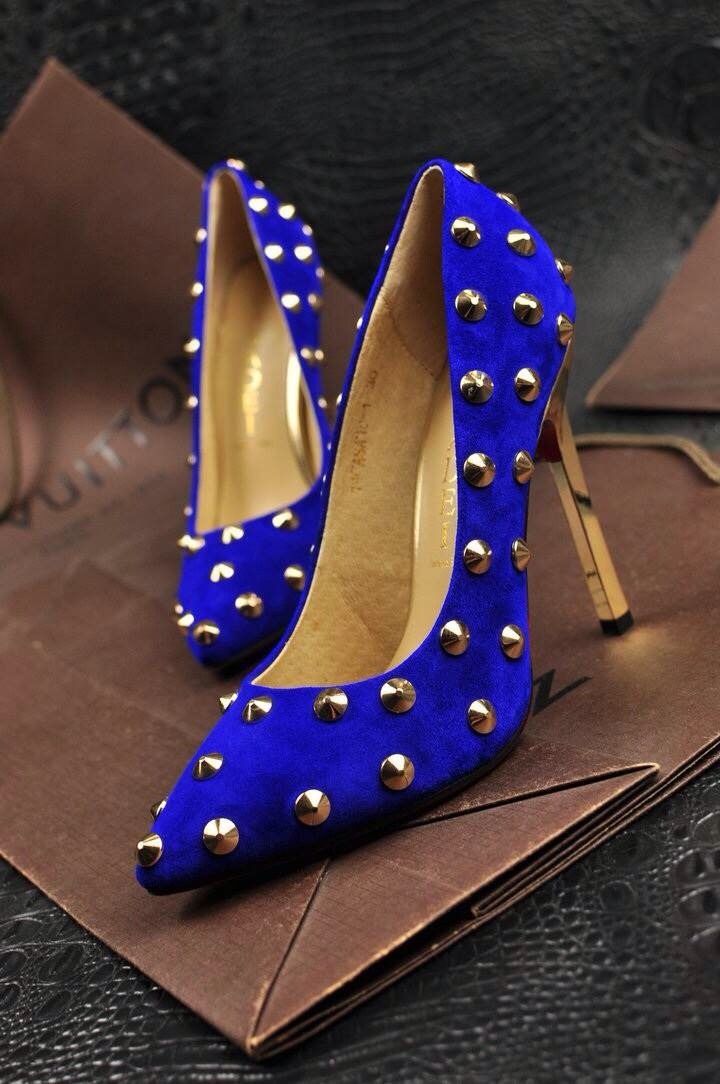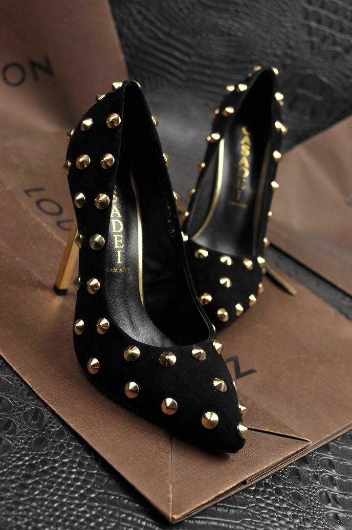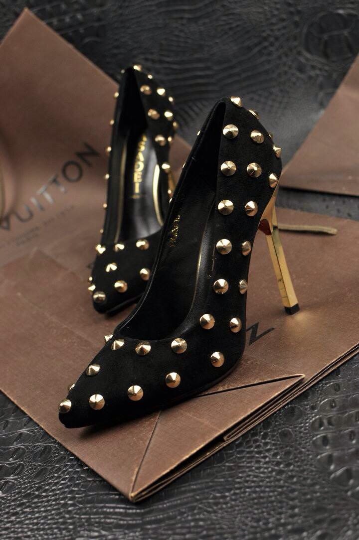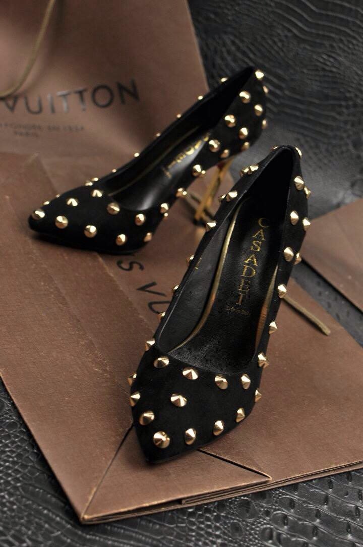 Fashion Rivets Decoration Thin heeled Women Pumps Closed Round Toe Women Shoes High Heels Lady Party