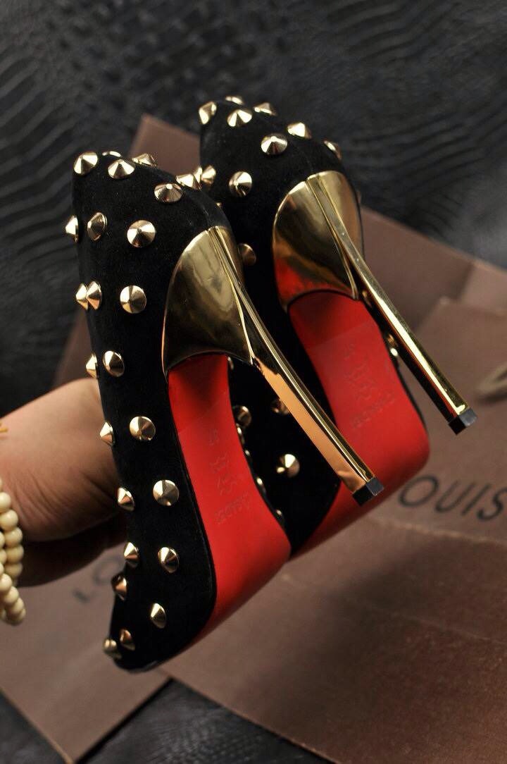 High quality 2014 NEW spring party high heel single shoes sexy women Rivets Red bottom shoes Free shipping