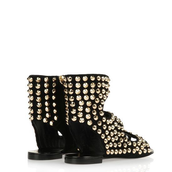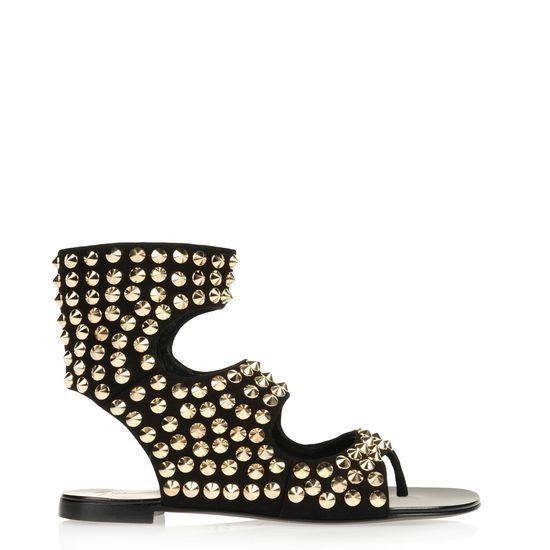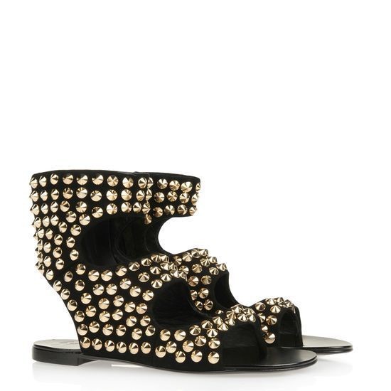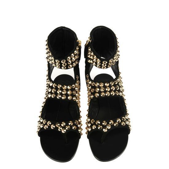 High Quality Black and Gold Women Open Toe Slingbacks Pointed Toe Summer Flat Shoes Fashion Lady Sandals with Rivets