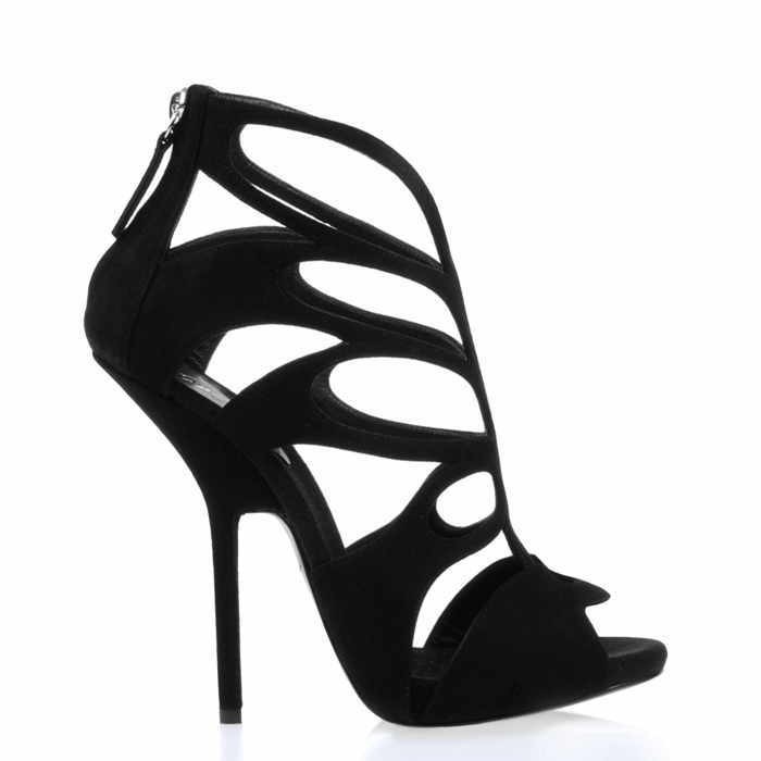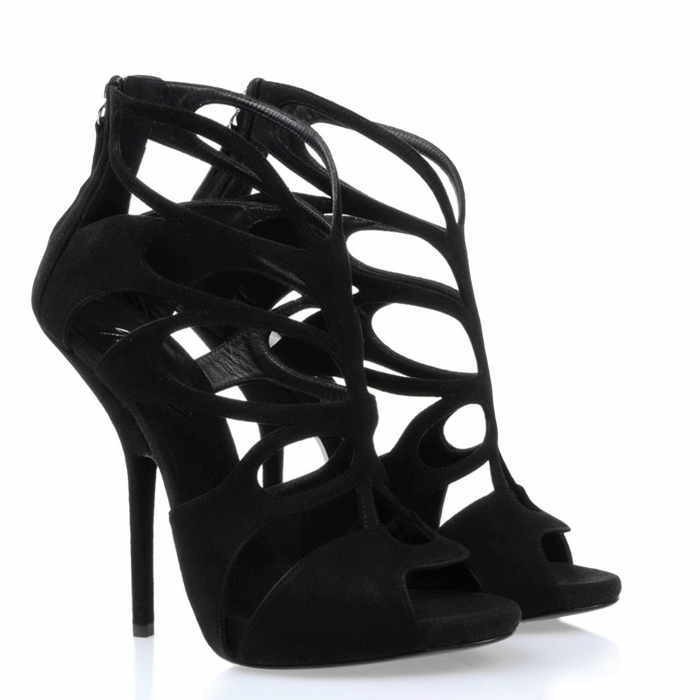 High Quality Black Gladiator Style Thin Heels Cutout Flock Brand Style Summer Ladies Party & Weeding Sandals for Celebrity