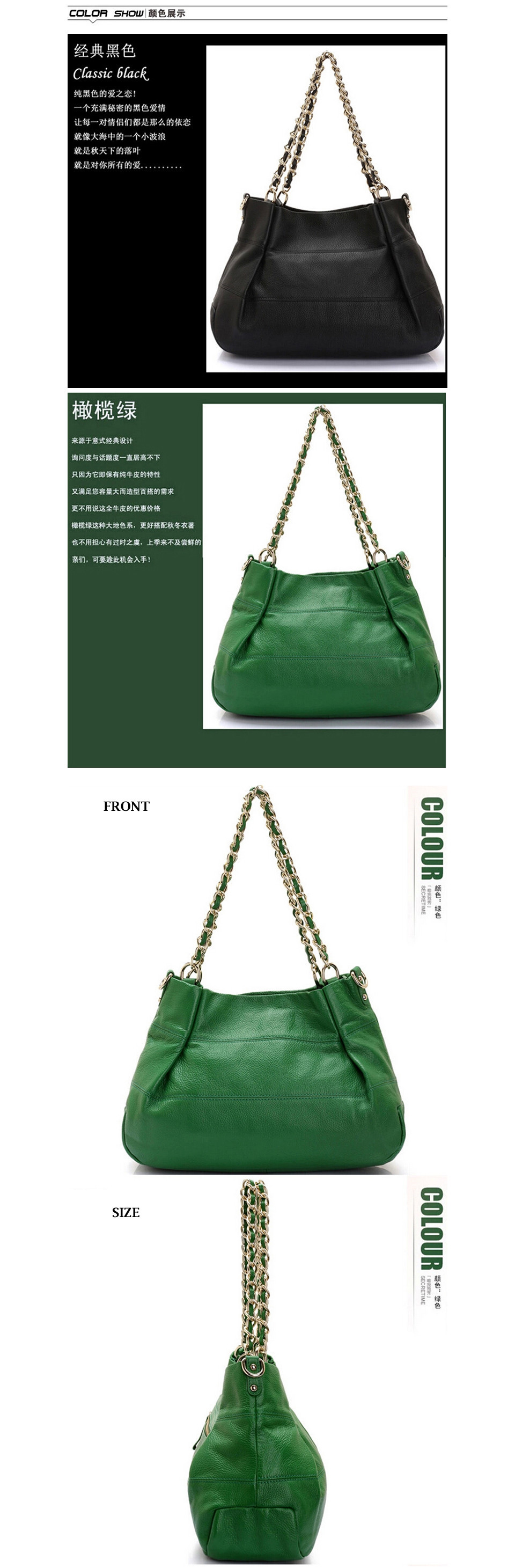 Designer handbags high quality geniune cowhide leather chain straps shoulder bag elegant mature lady green color