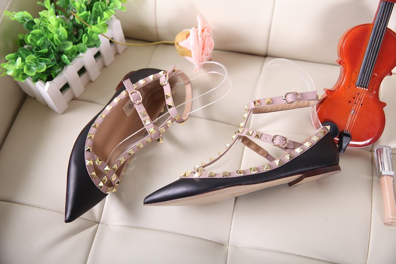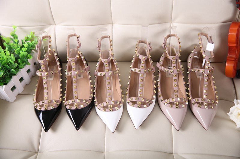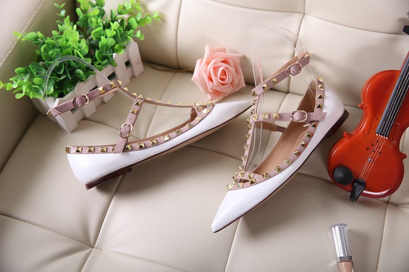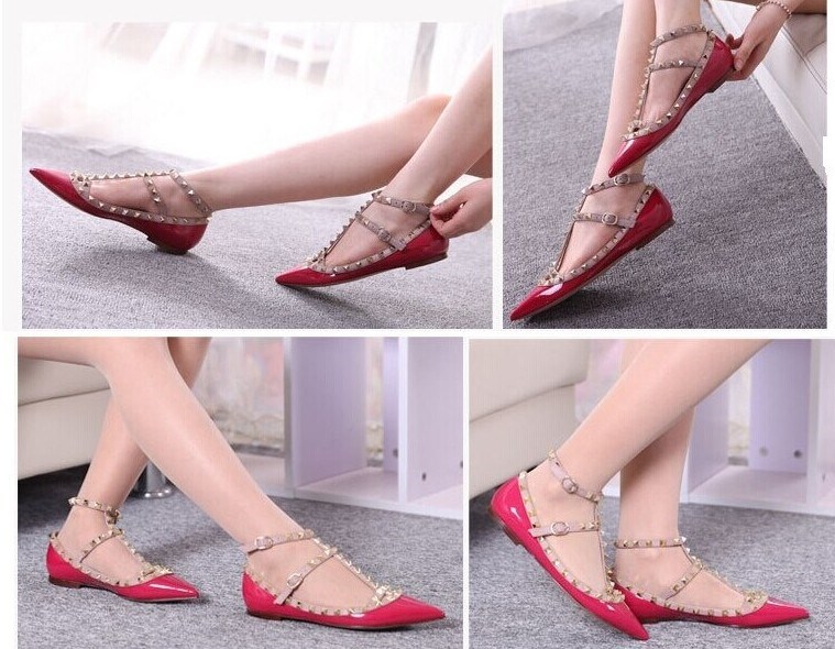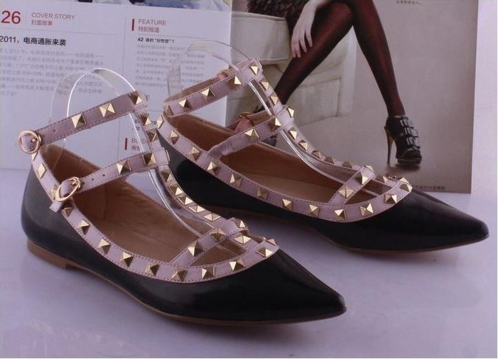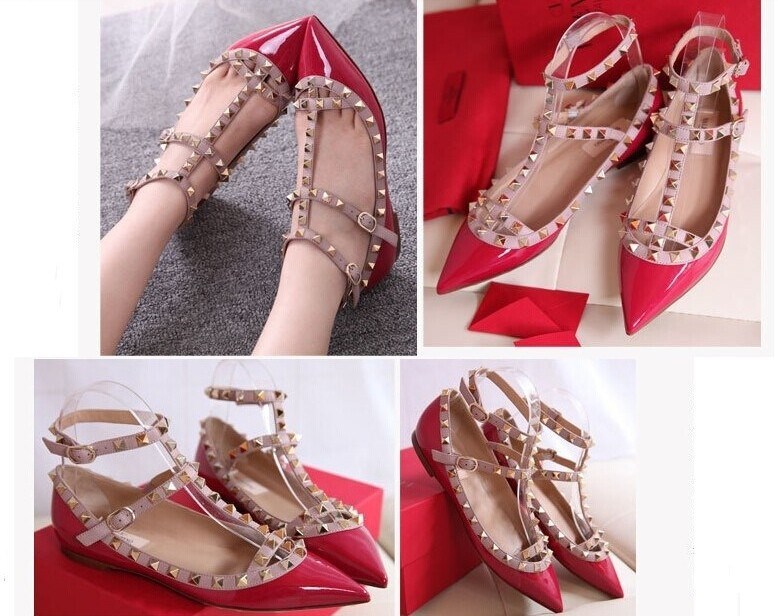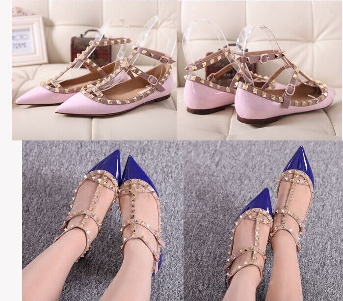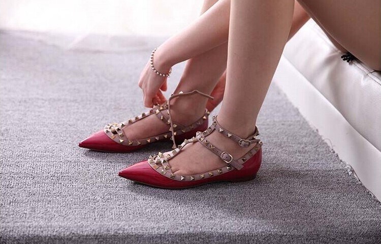 high quality genuine leather sandals shoes rivets Valentine sharp rivets flat shoes
