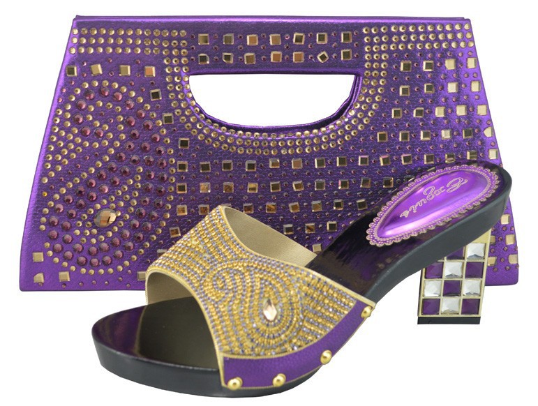 High quality matching italian shoe and bag set with free shipping in purple,PU leather round toe heels,size 1308-43,Size 38-42