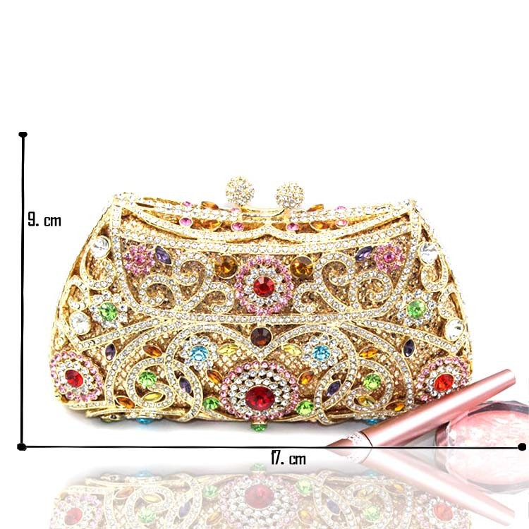 High quality women crystal studded metal clutch bag rhinestone clutch colorful clutches prom bag crown bridal