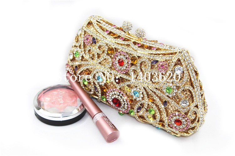 High quality women crystal studded metal clutch bag rhinestone clutch colorful clutches prom bag crown bridal wedding party bags