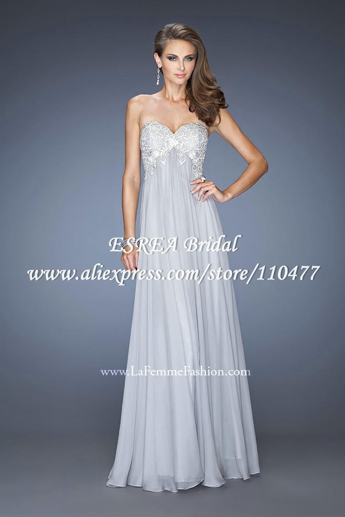 High Waist Fashion Elegant Sweetheart Appliques Grey Silver Bridesmaid Dress Long Chiffon HM603 Vestido Madrinha