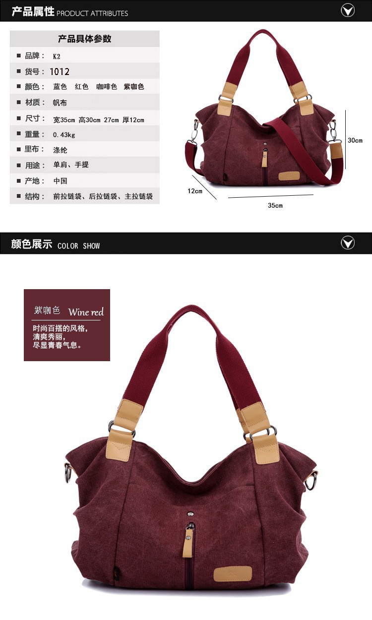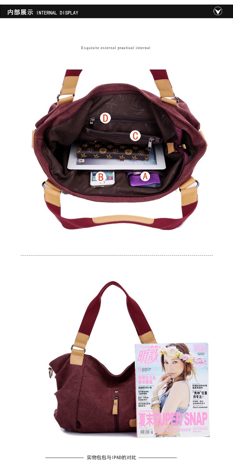 Hihg quality lady canvas handbag leisure bag fashion women shouler bag messenger bag