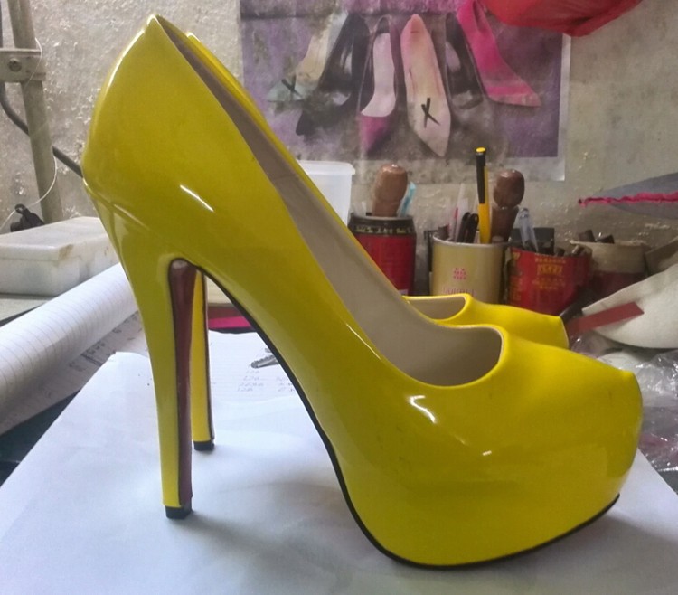 HOT big yards 34-45 2014 New Designer candy color yellow high heels platform wedding shoes women pumps white size red bottom