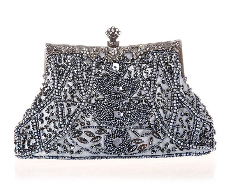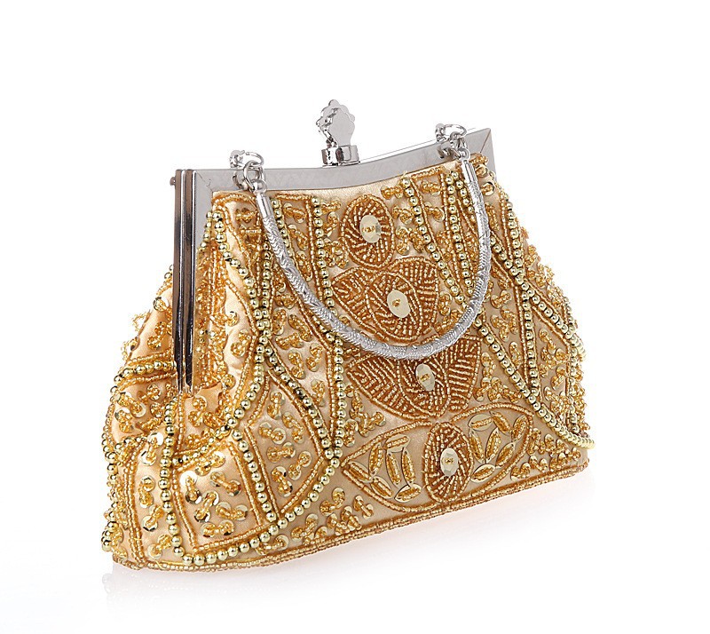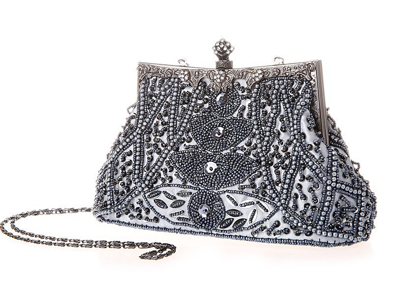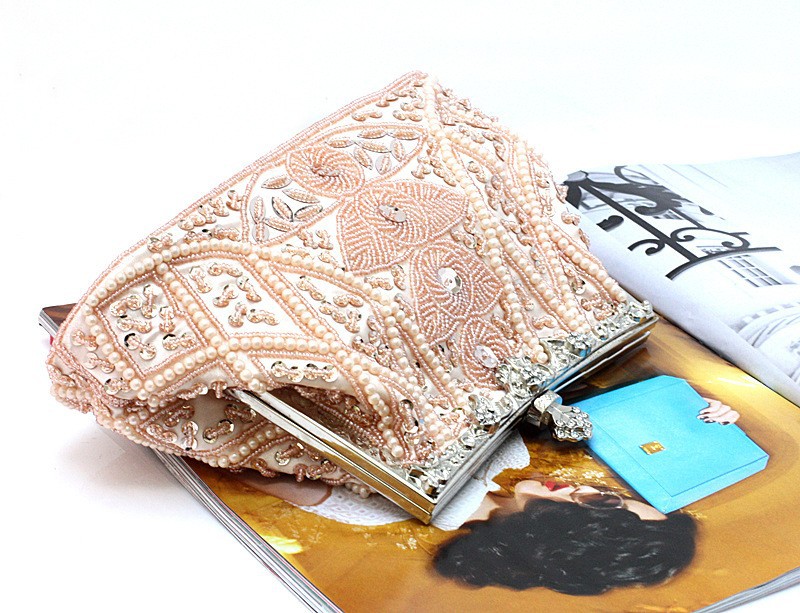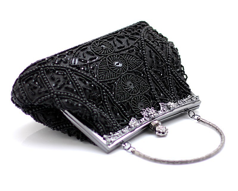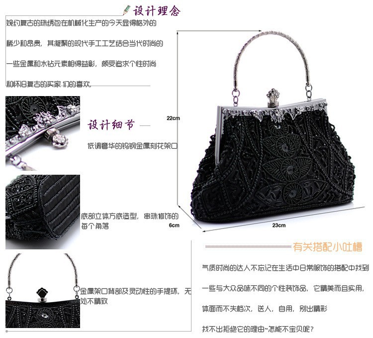 Hot New Women s Evening Bag Exquisite Handmade Beaded Sequined Clutch Retro Flower Pattern Handbag Chain