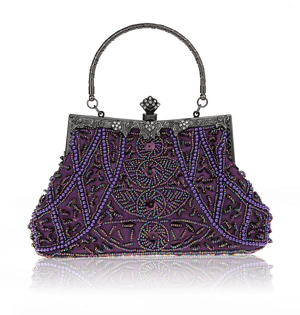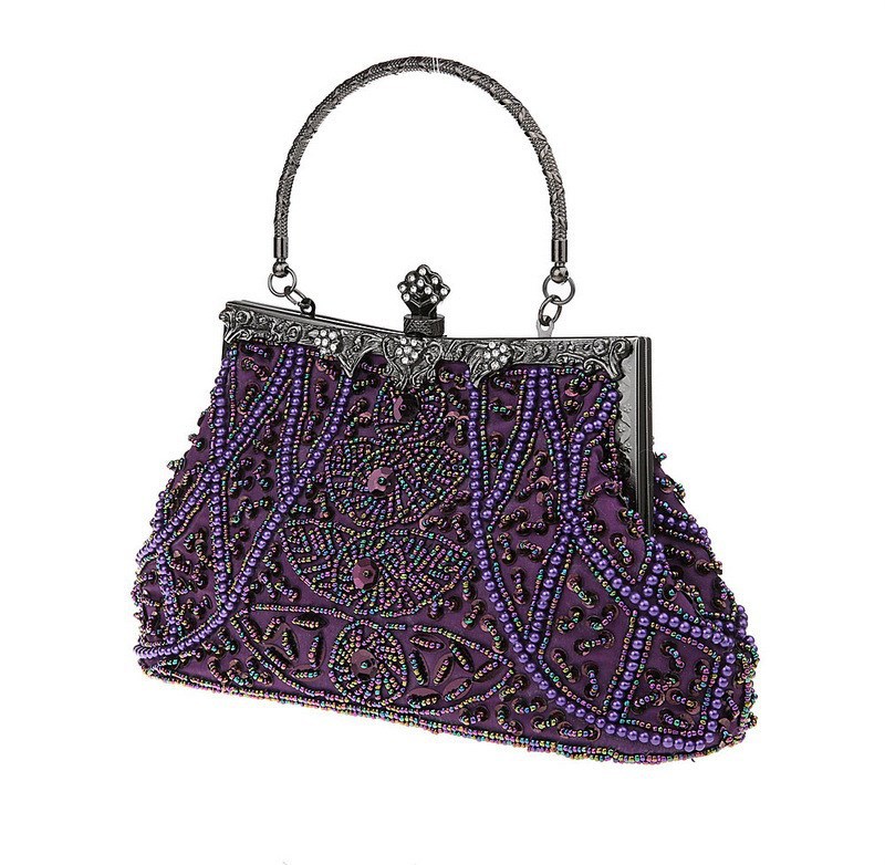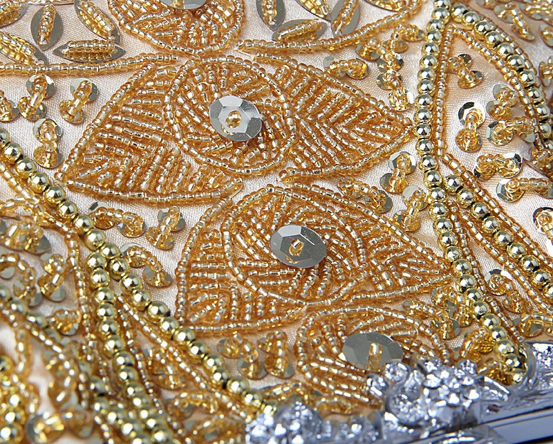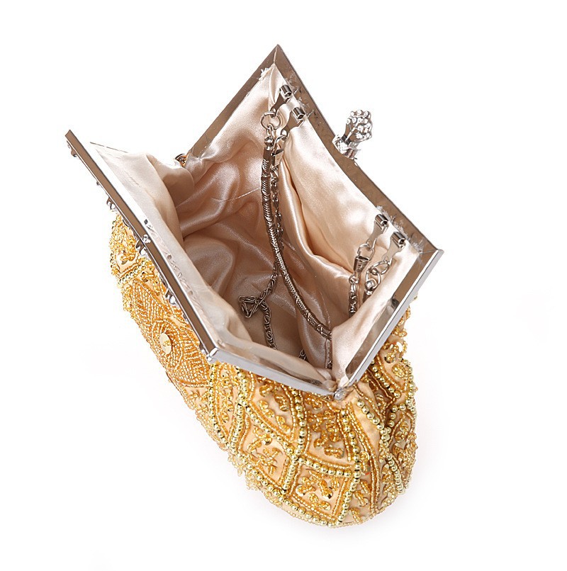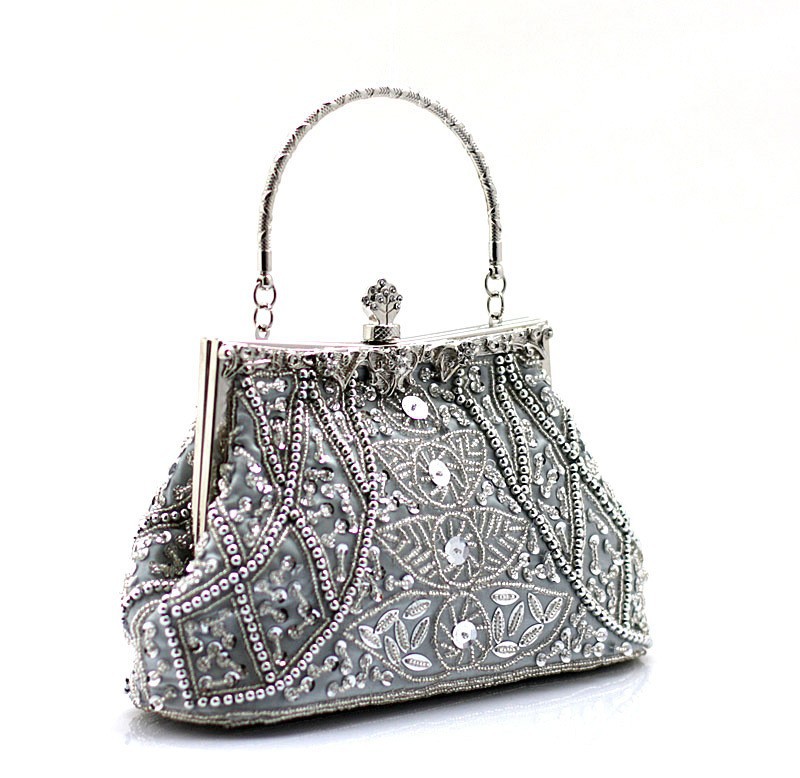 Hot New Women s Evening Bag Exquisite Handmade Beaded Sequined Clutch Retro Flower Pattern Handbag Chain