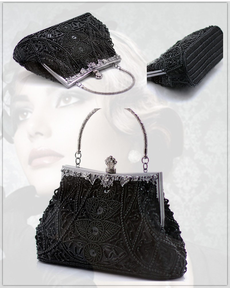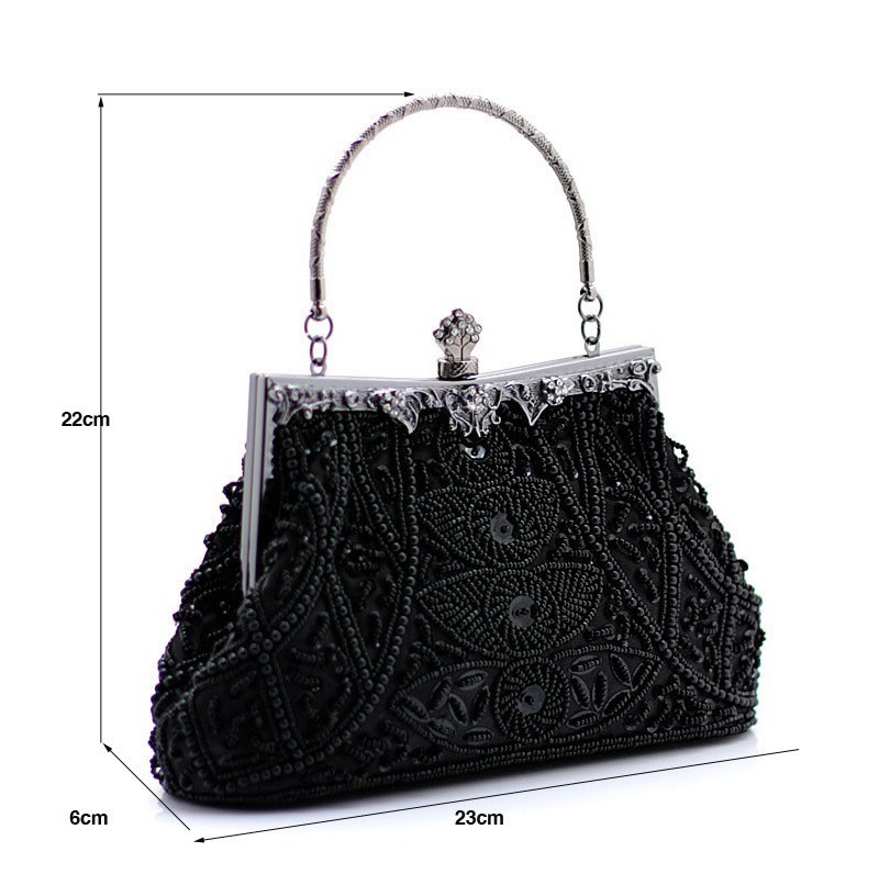 Hot New Women’s Evening Bag.Exquisite Handmade Beaded Sequined Clutch. Retro Flower Pattern Handbag Chain Shoulder Messenger Bag