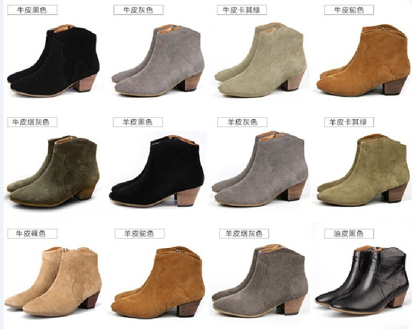 Hot sale 2013 Isabel Marant 100% Genuine Leather Botas Martin Pointed Toe High Heels Motorcycle Ankle Boots Women Shoes