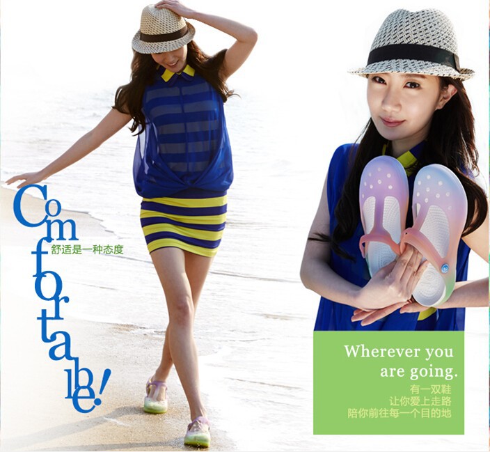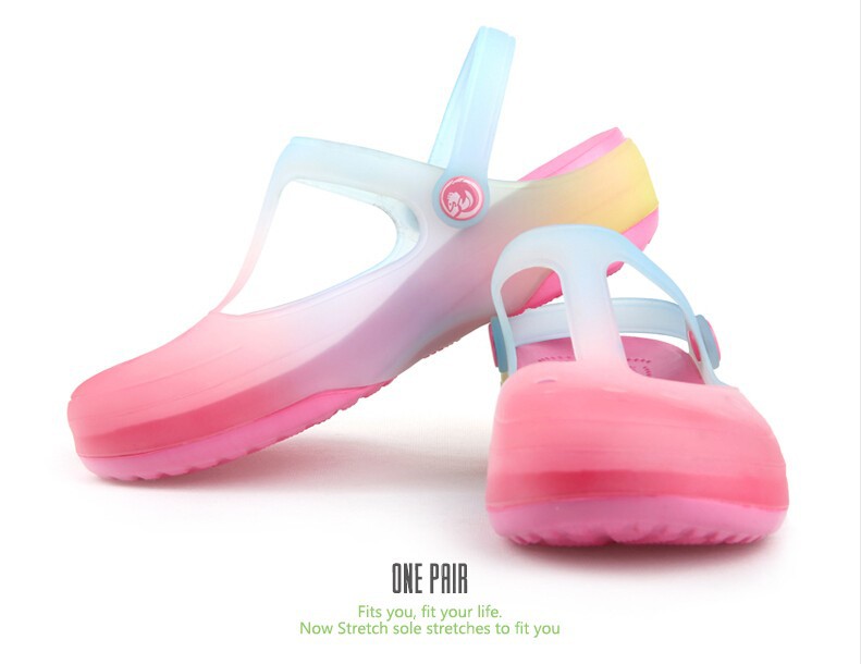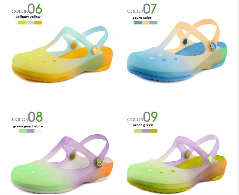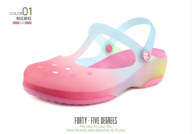 Hot-selling 2014 ,Color gradient Mary Jane jelly shoes slippers thick bottom hole shoes lady sandals beach sandals,Free shipping