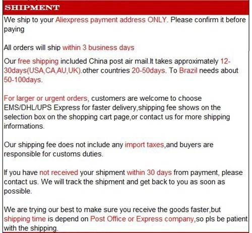 Seller ServiceOn-time DeliveryIf you do not receive your purchase within 60 days, you can ask for a full refund before order completion (when you click "Confirm Order Received" or exceed confirmation timeframe).