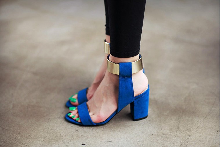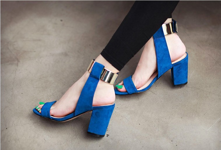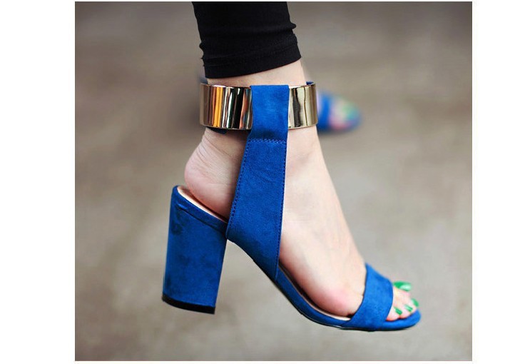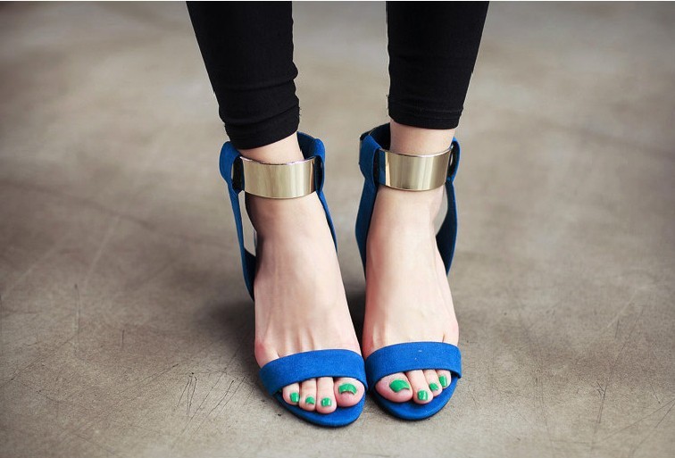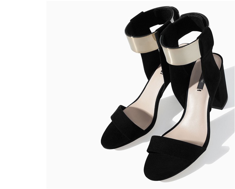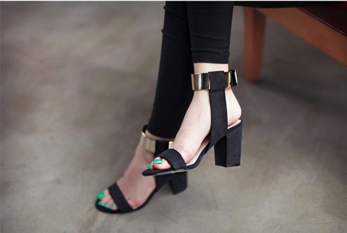 Hot Summer 2014 Women Designer High Heel Leather Metal tablets belt strap Gold Black Sexy Shoes