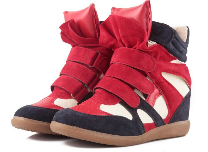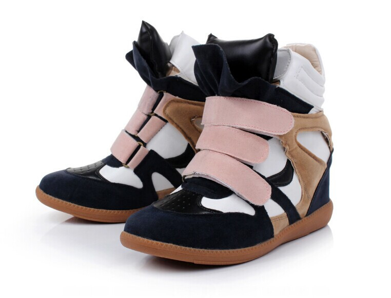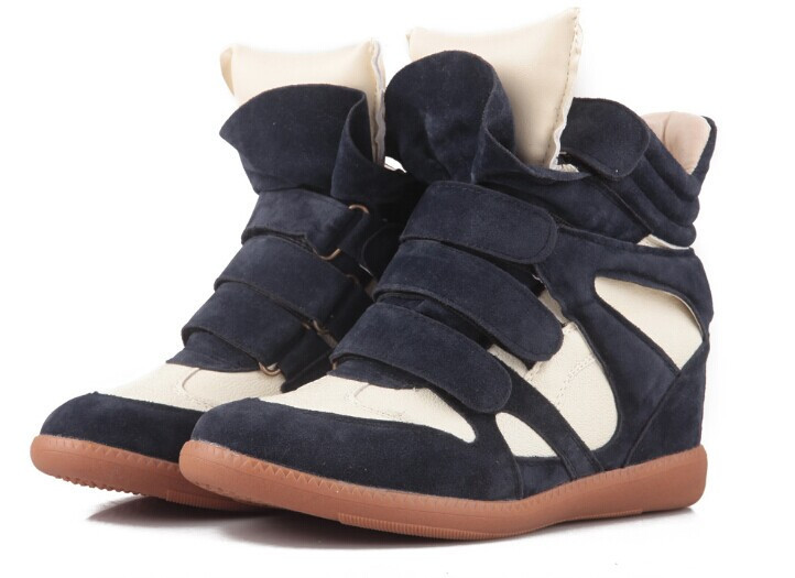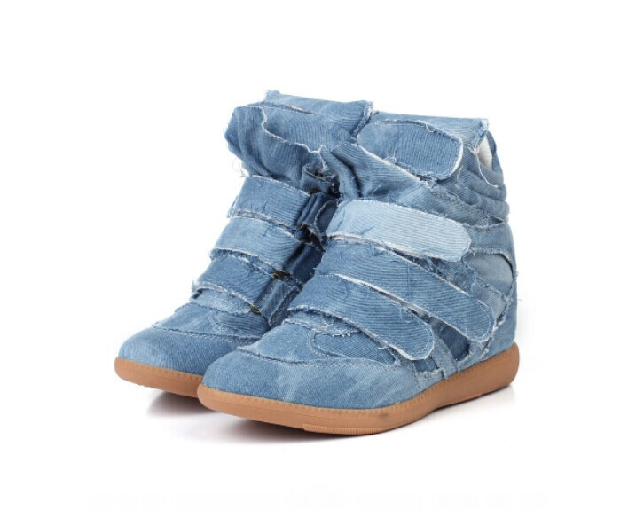isabel marant Blue jean hollow sneakers high top wedge height increasing shoes Multicolo platform sneaker new woman brand shoes
