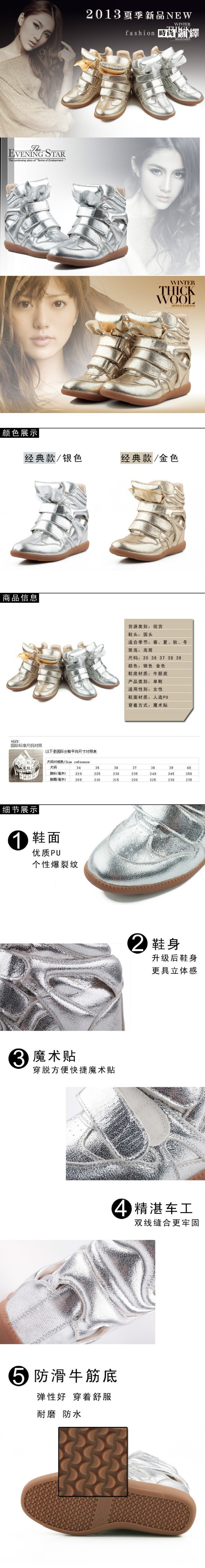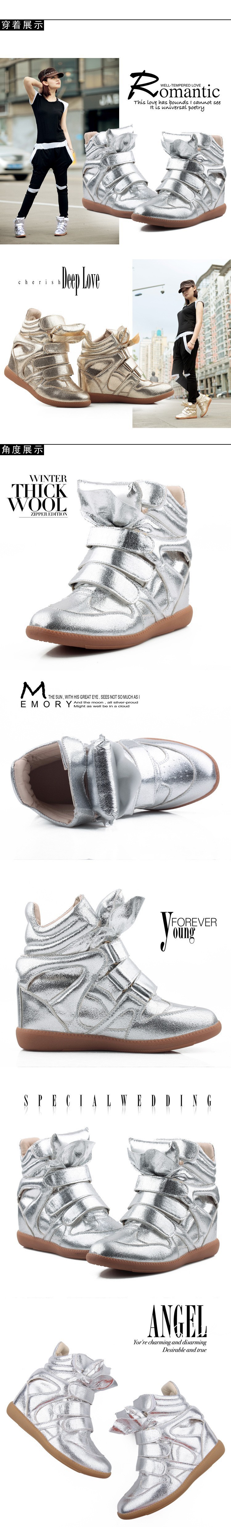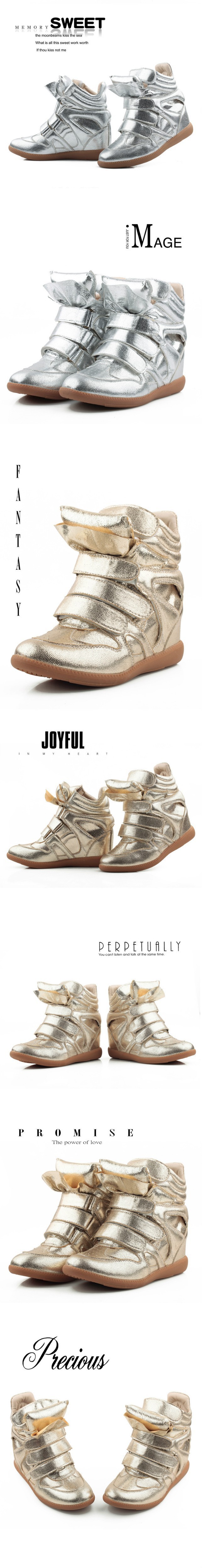 Isabel Marant Genuine Leather Size(34~42) Boots Height Increasing Sneakers Women Golden / silver bright surface Shoes
