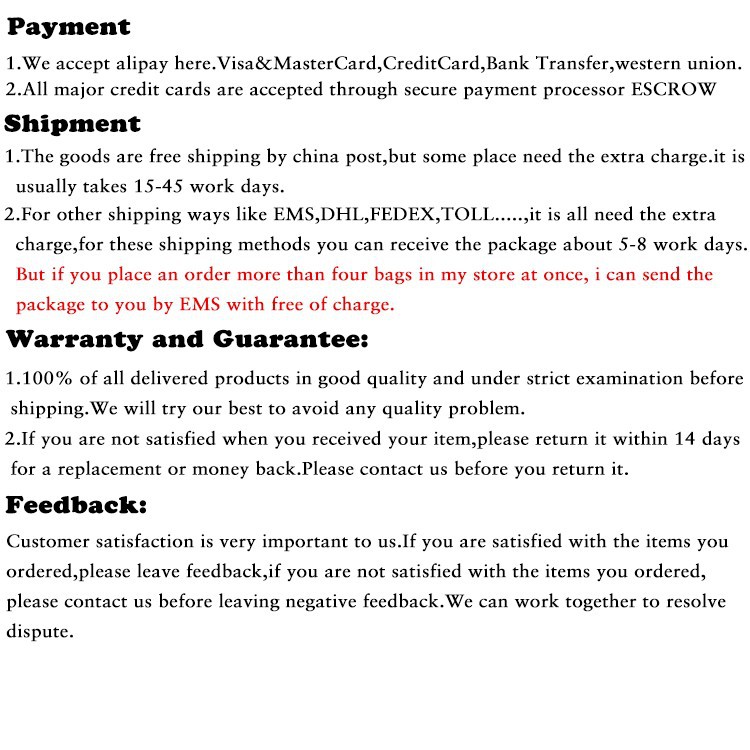 | Seller Service | On-time DeliveryIf you do not receive your purchase within 60 days, you can ask for a full refund before order completion (when you click "Confirm Order Received" or exceed confirmation timeframe). |