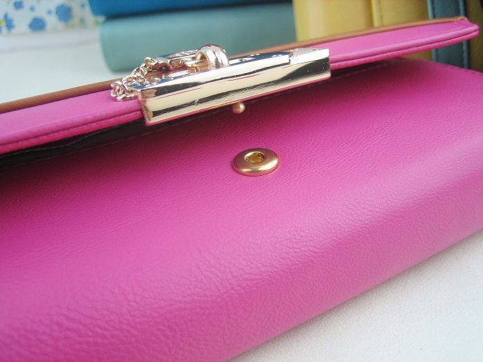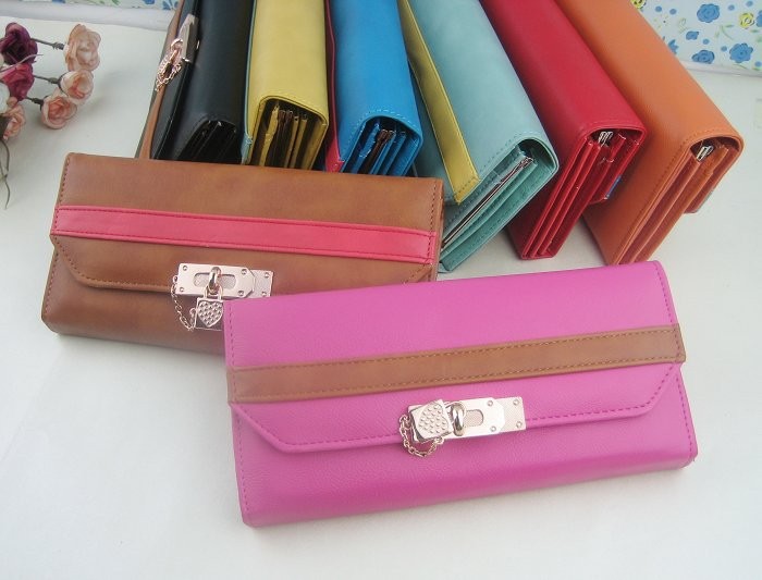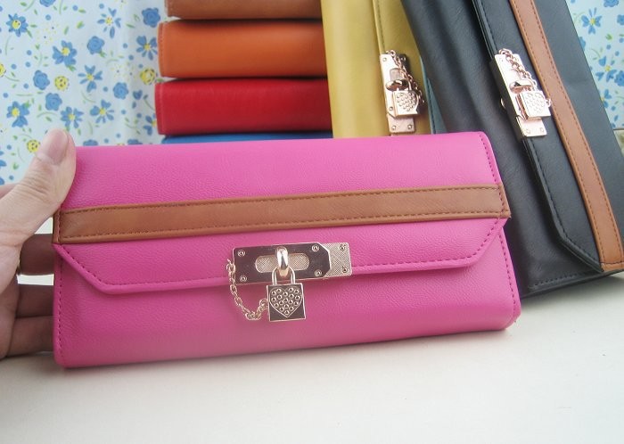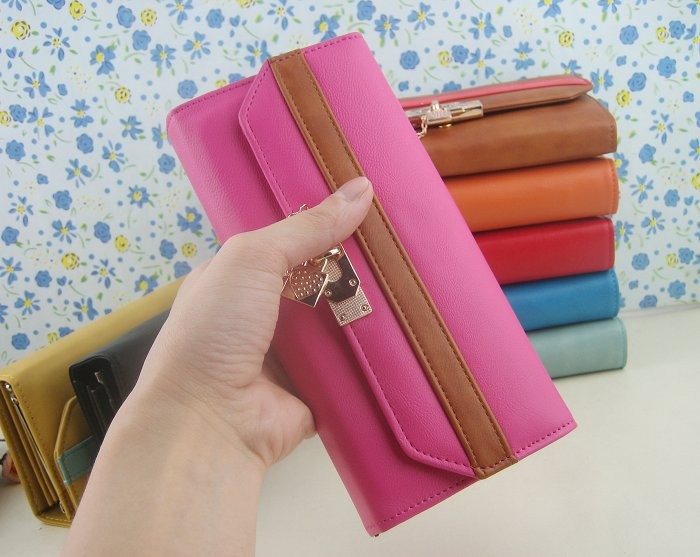 Korean fashion small lock touch buckle women wallet candy colored skin color models hit the imported PU Long Wallet