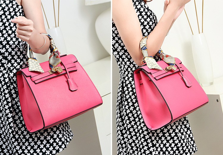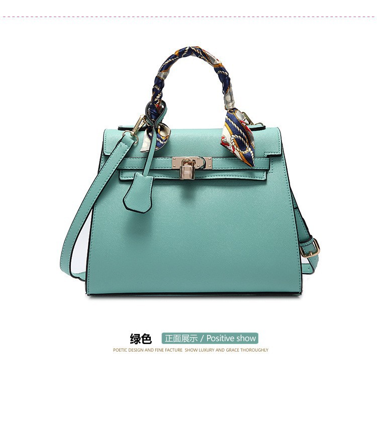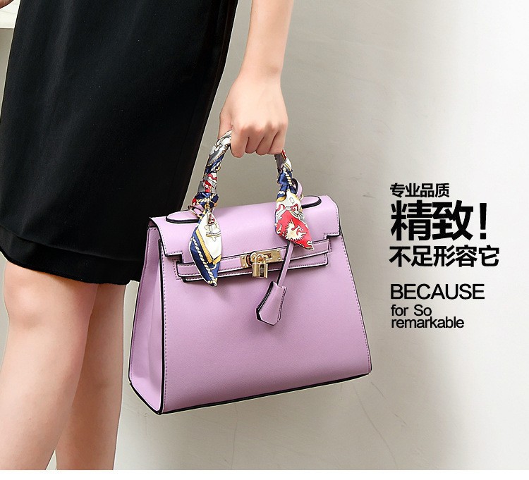 lady high quality hand made wool leather bag lady silk scarf decoration handbag lady classic office handbag