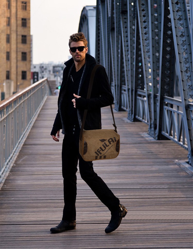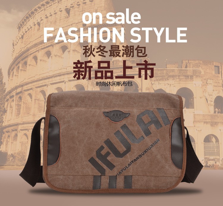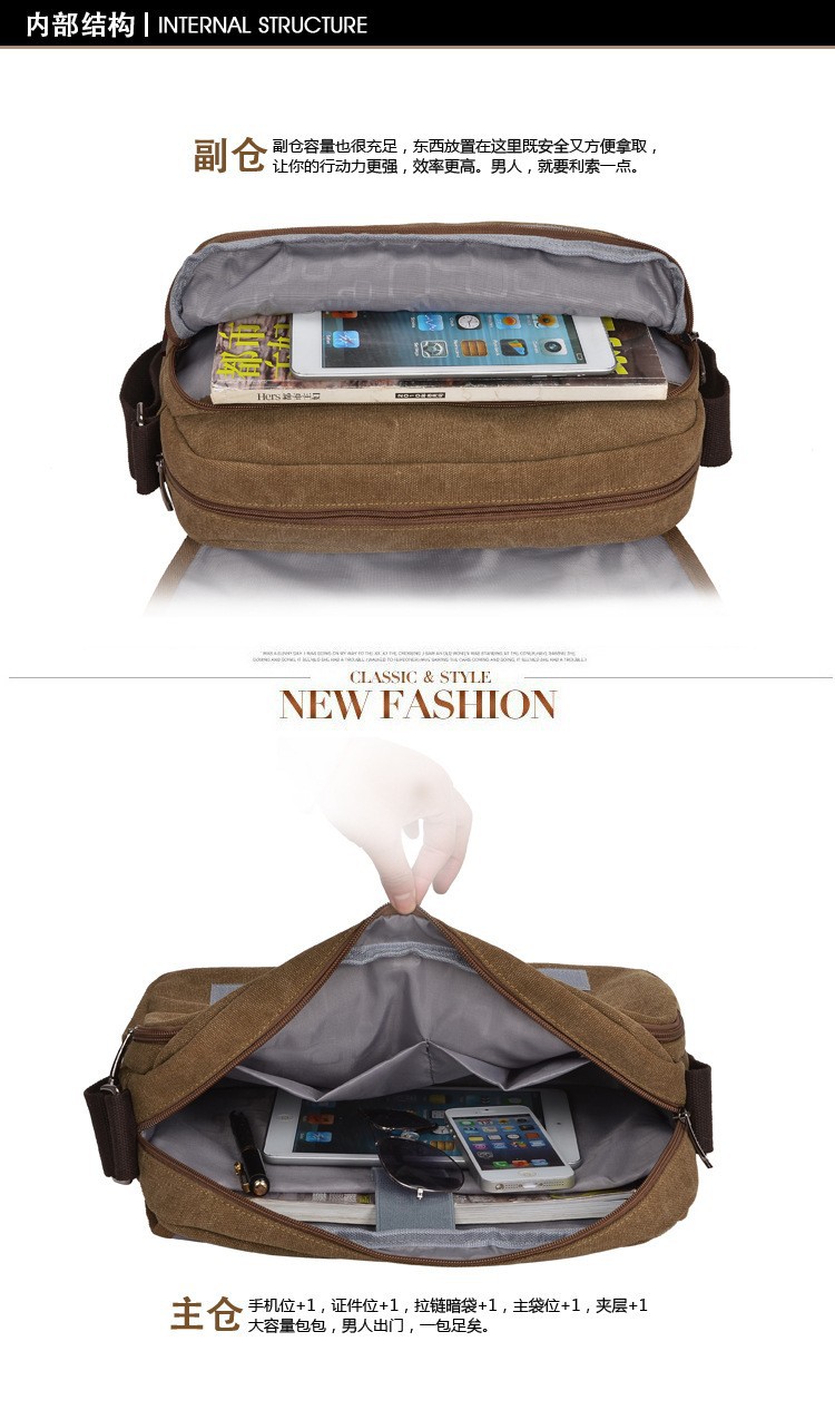 Large capacity man canvas school bags casual printing messenger bag with leather women vintage canvas shoulder bag 14″laptop bag