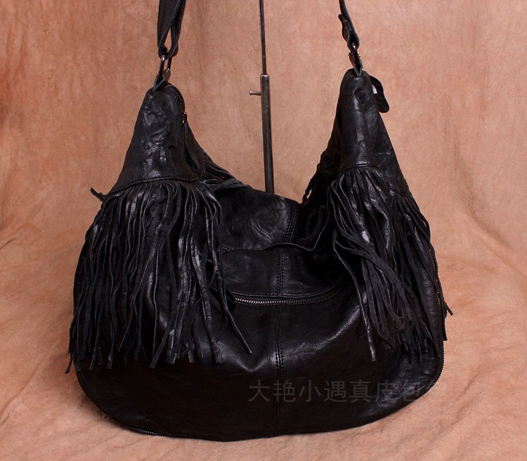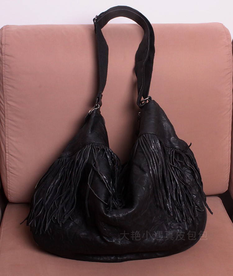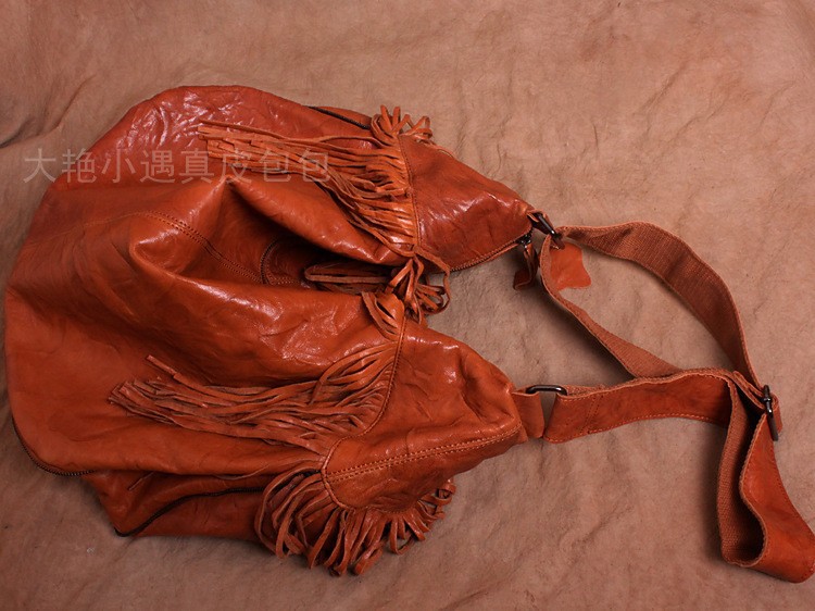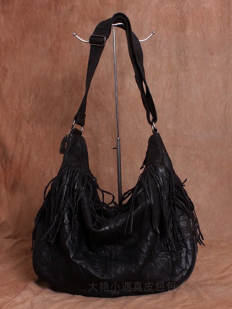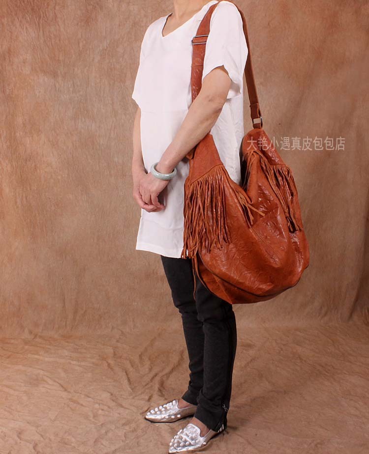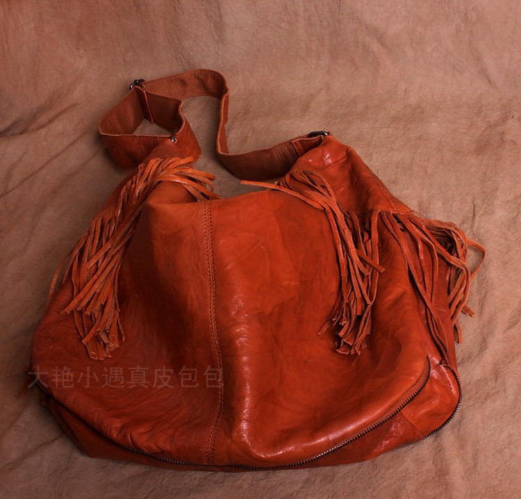 Large vintage handmade leather bag one shoulder his sheepskin bag