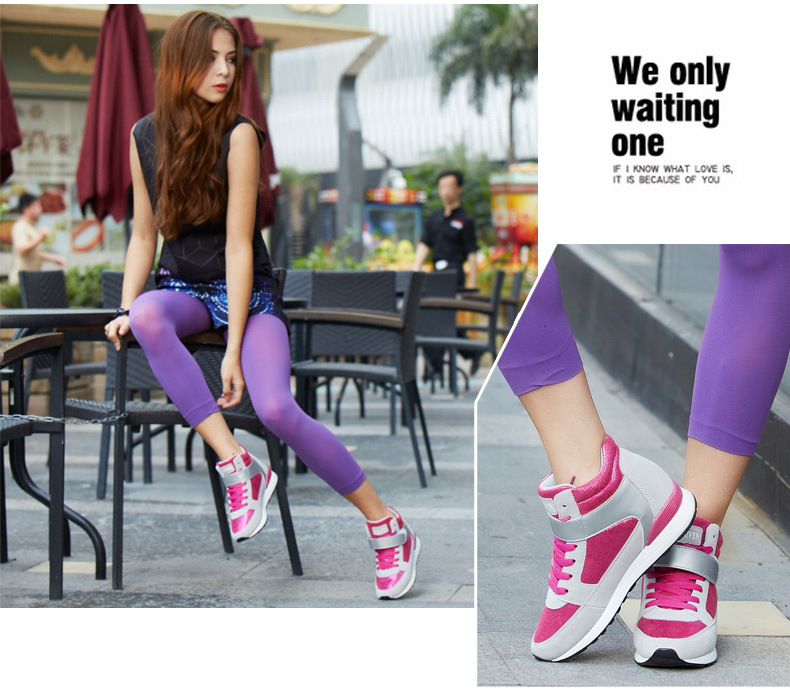 Leather Fashion Sneakers Platform Woman Increased Shoes Sequined Velcro Sneakers Wedge High Heels zapatos mujer 2014