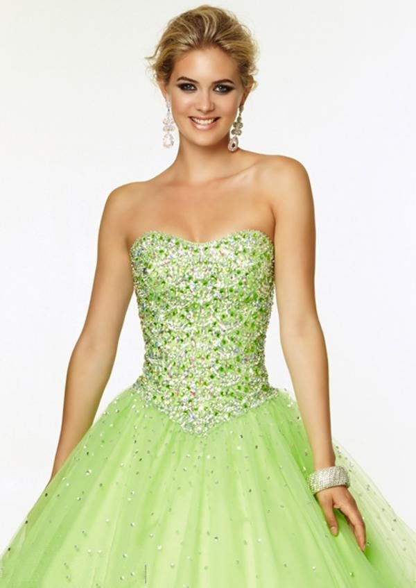 Lime Green Lilac Tulle Ball Gown Quinceanera Dresses 2015 f-97081 Custom Sparkly Crystals Sweetheart Backless Girls Pageant Gown