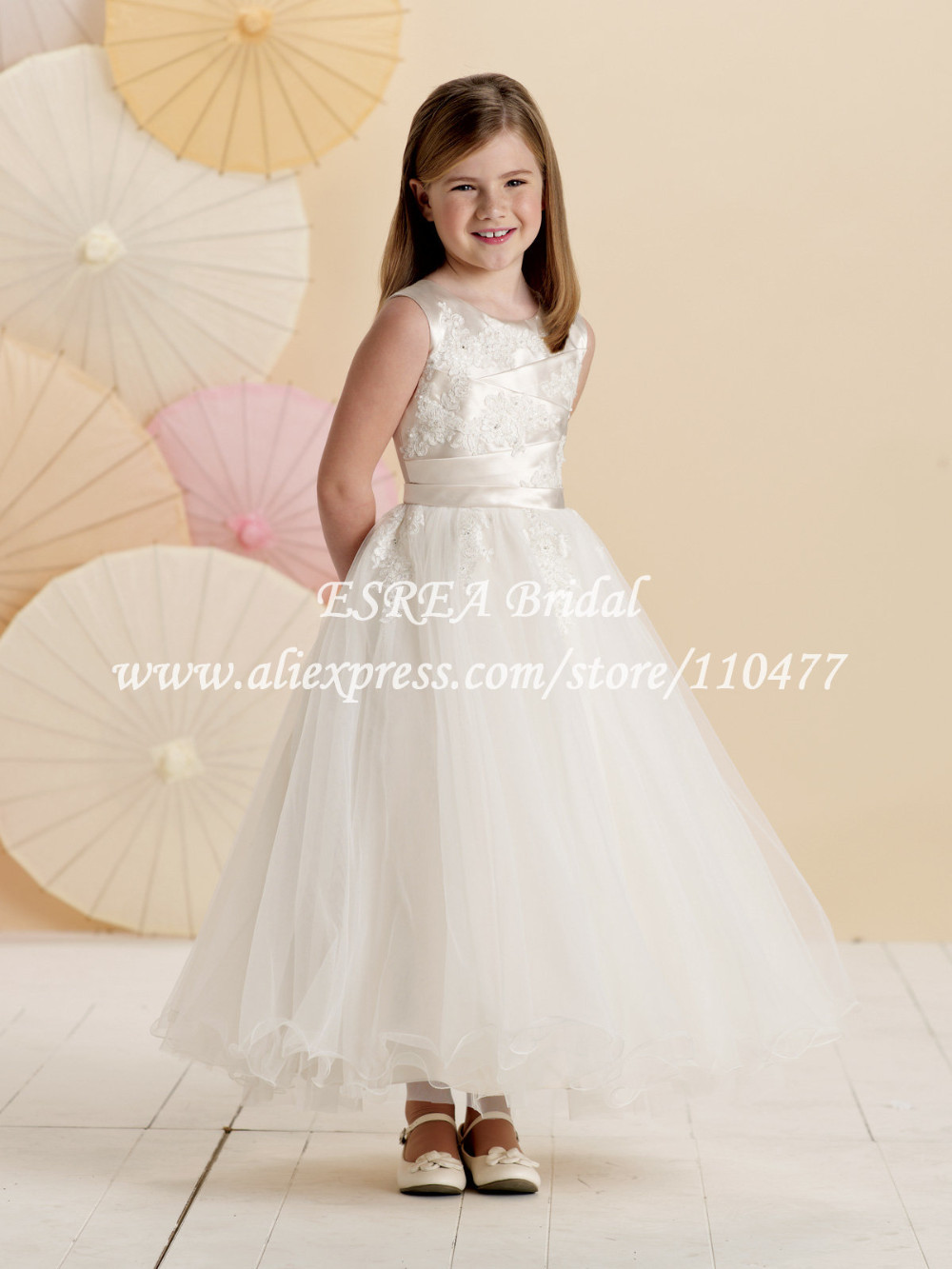 Lovable Appliqued Long Organza Girls Communion Dresses First Puffy HS218 Vestido de Daminha