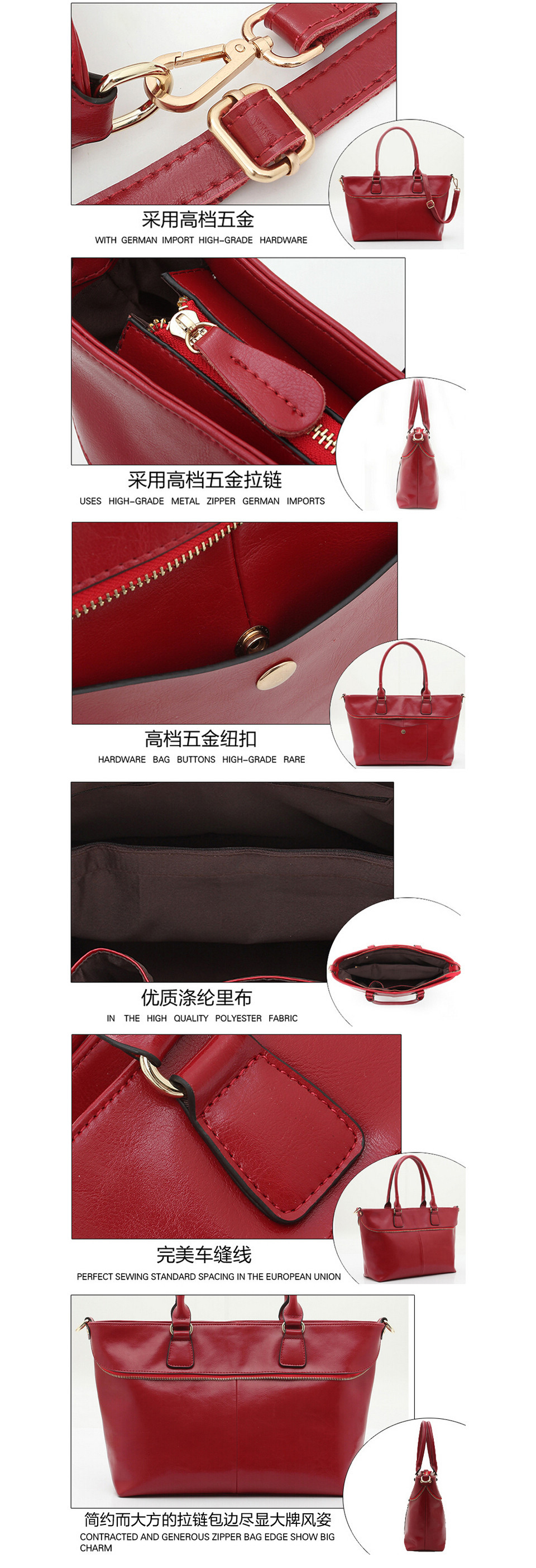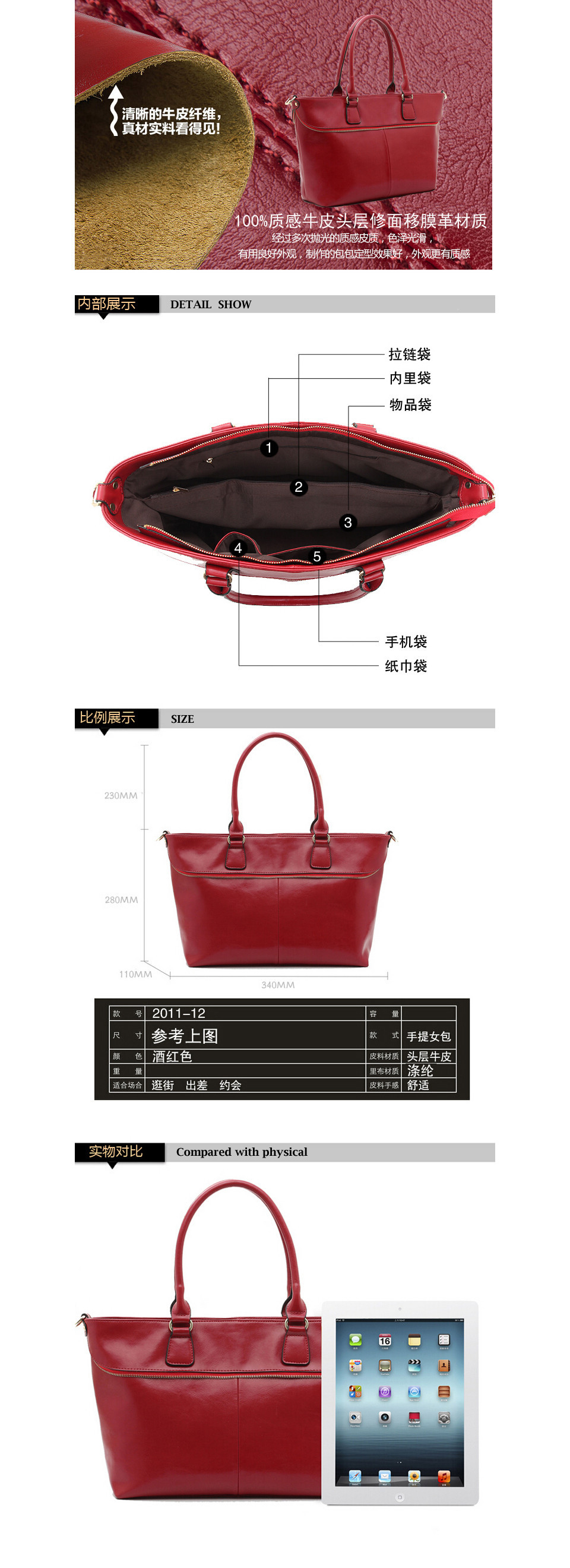 Luxury 100% geniune cow leather lady handbag smooth touch original brand female shoulder bag /women handbag with leather handle